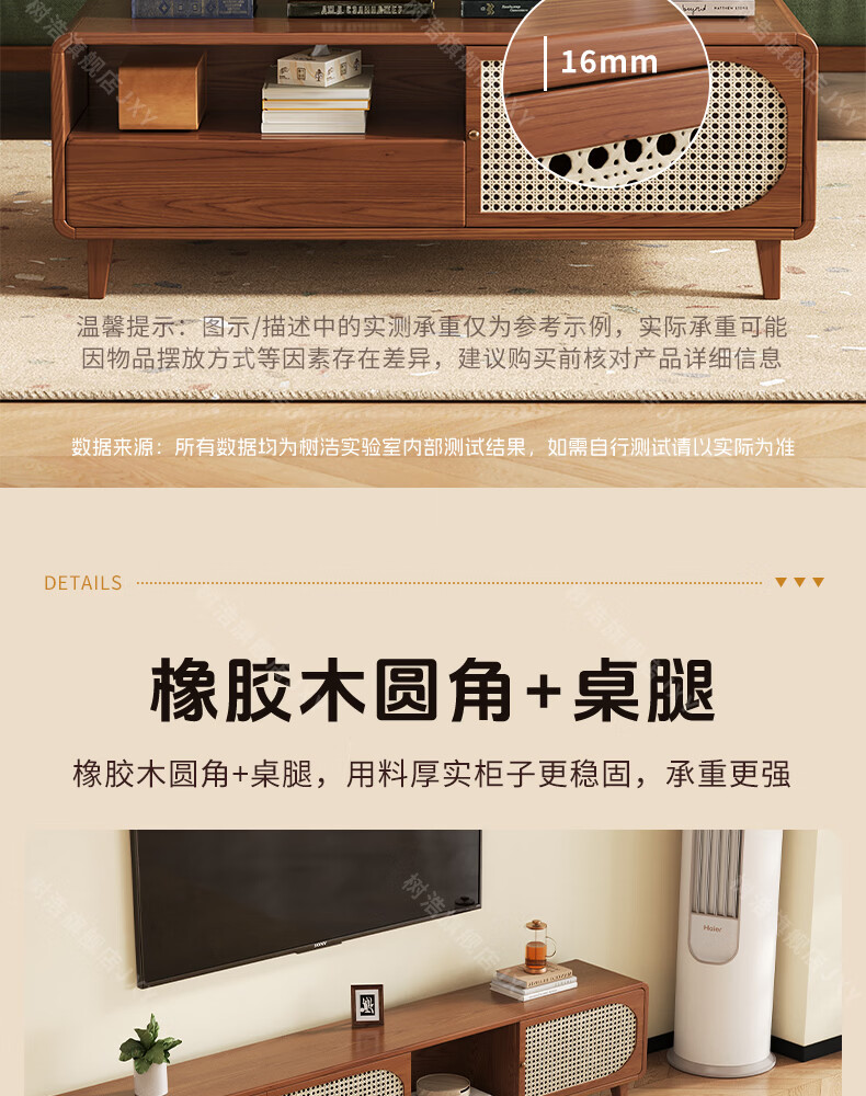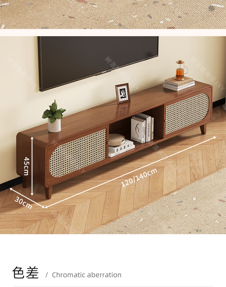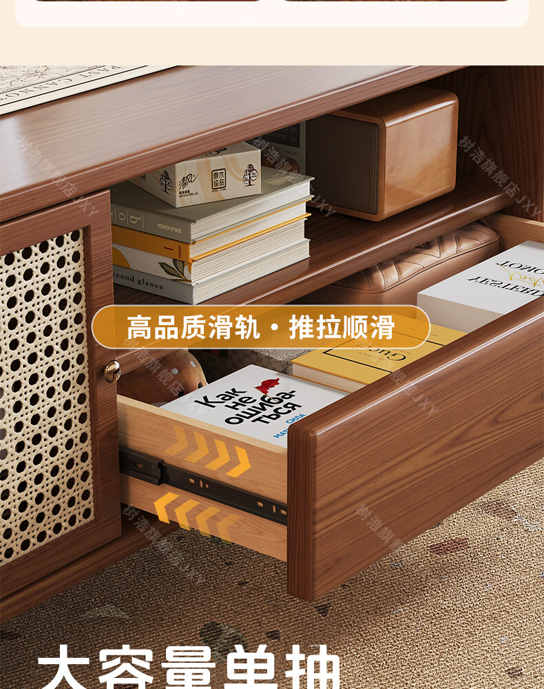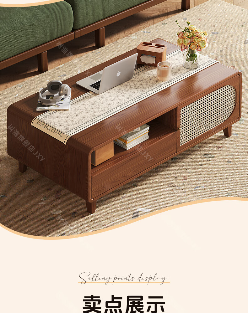 树浩茶几客厅茶桌茶台出租房置物架电视柜组合小户型储物柜简约风桌子 胡桃色-藤编款式【茶几】120双门双抽款