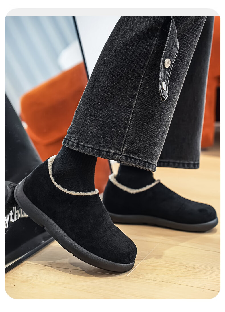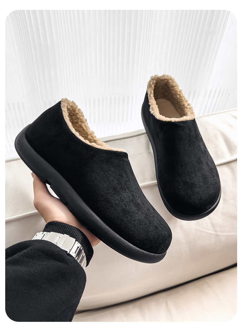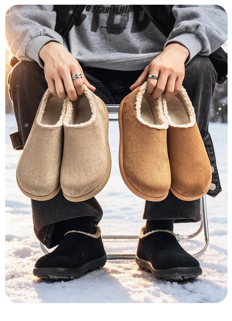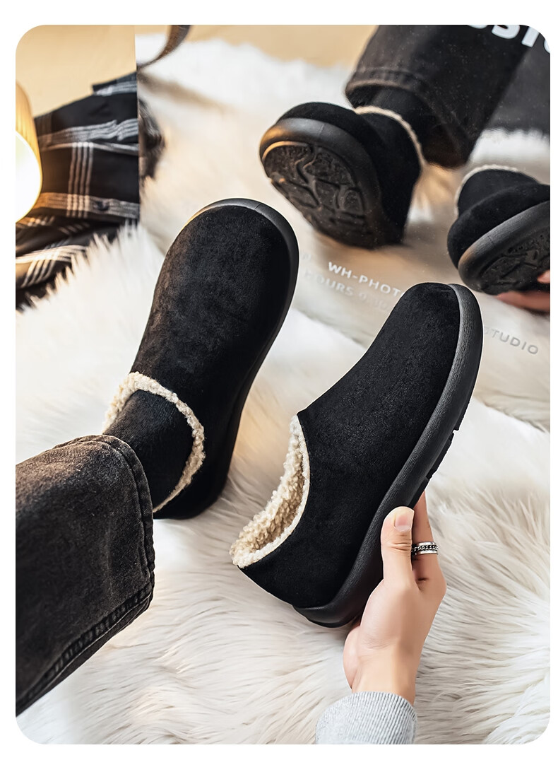 稻草人(MEXICAN)男鞋冬季加绒保暖棉鞋男士一脚蹬运动休闲防水防滑厚底增高勃肯鞋 黑色升级款 42