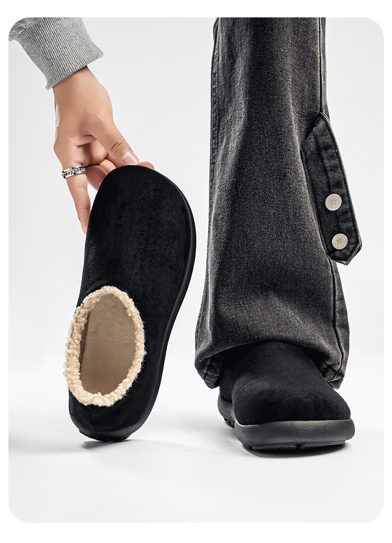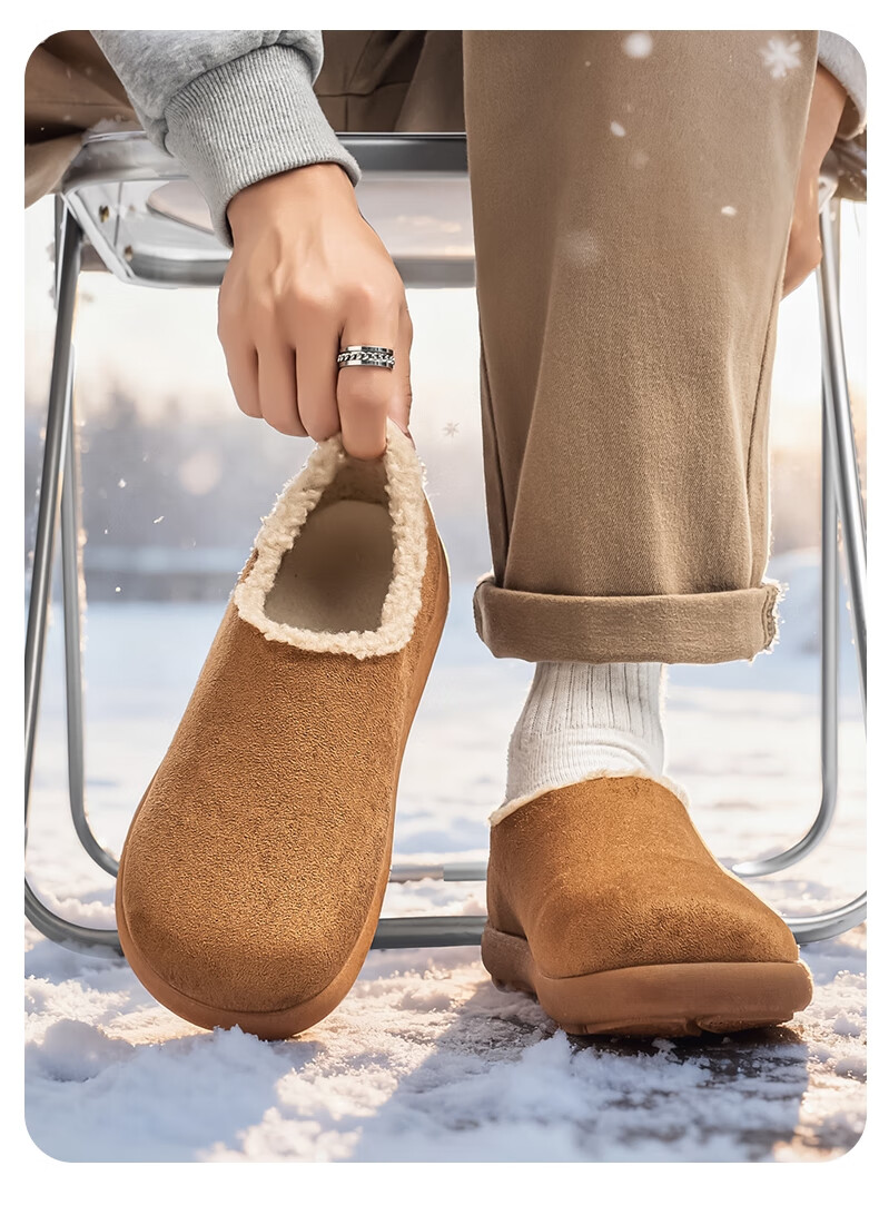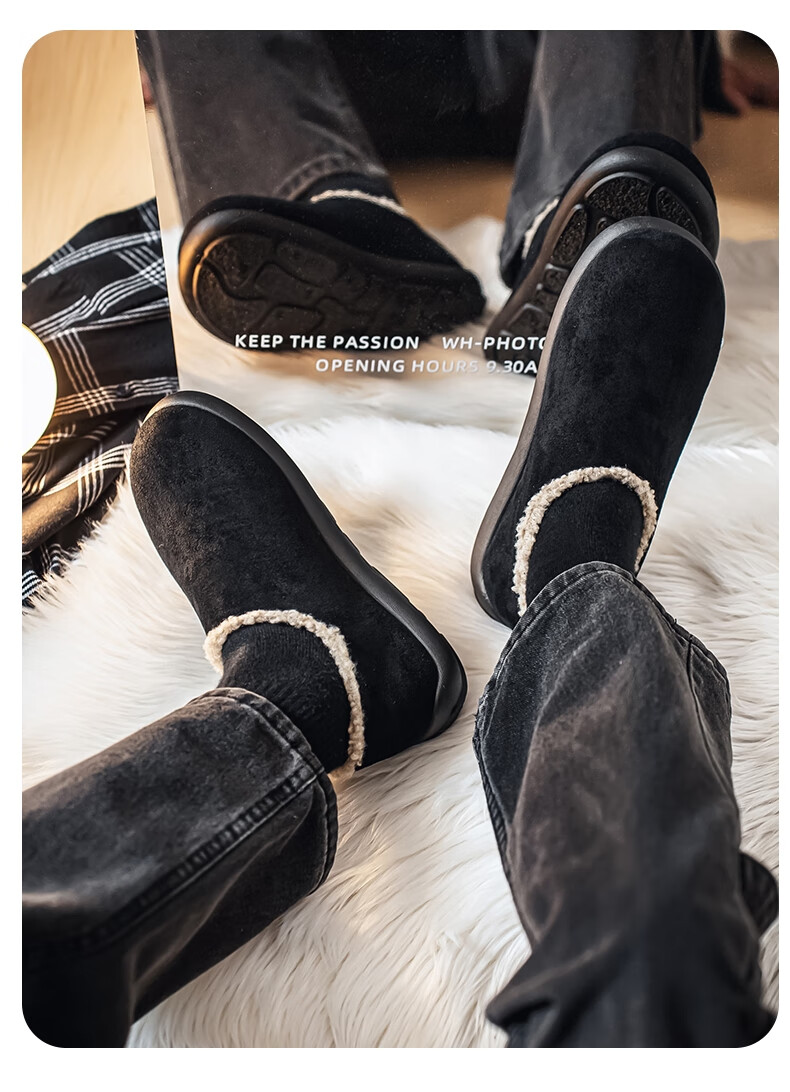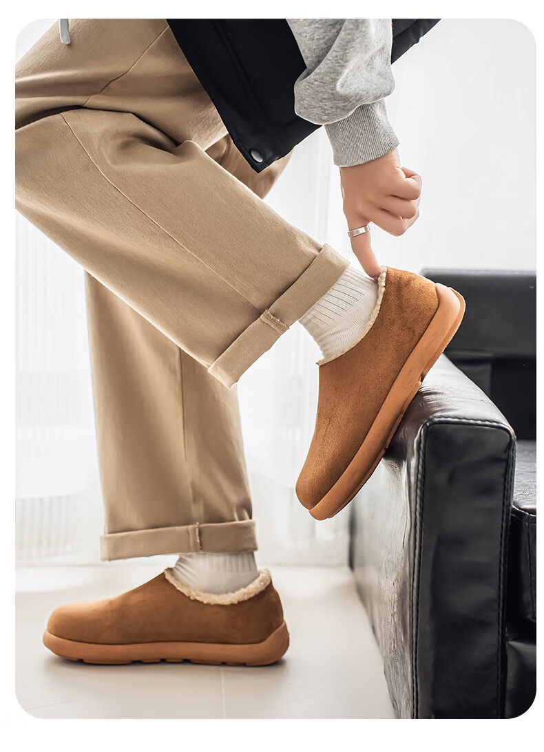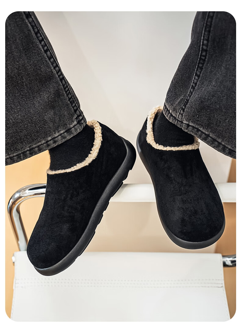 稻草人(MEXICAN)男鞋冬季加绒保暖棉鞋男士一脚蹬运动休闲防水防滑厚底增高勃肯鞋 黑色升级款 42