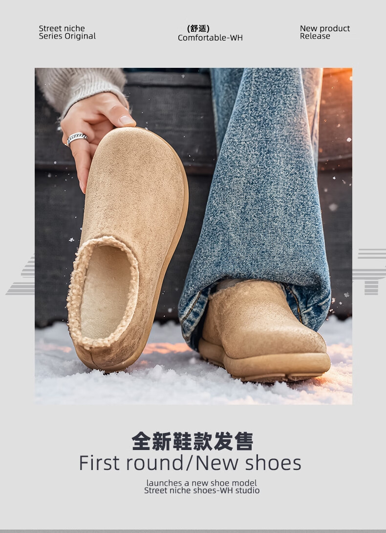 朴西踏云棉拖鞋男冬季百搭新款保暖家用棉拖加厚潮流毛绒防滑情侣棉鞋 藏青色 【温柔男友风】 44-45 【适合4344】