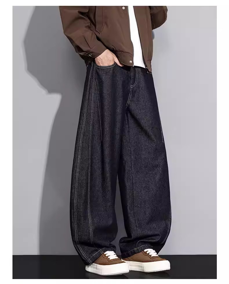 真维斯(Jeanswest)2026春季新款男士弯刀直筒牛仔裤简约宽松显瘦长裤时尚休闲男裤子 蓝色 S