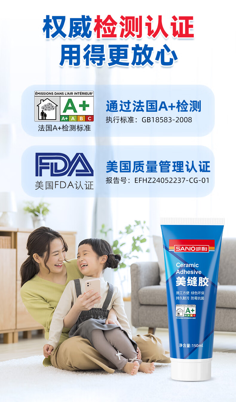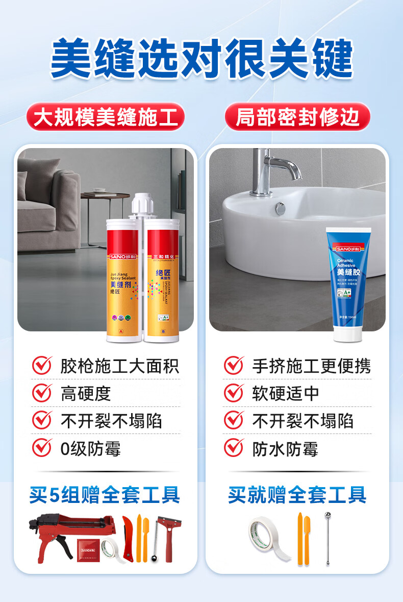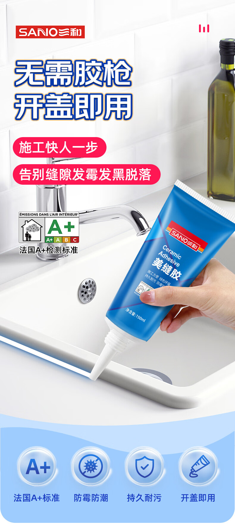 三和美缝剂瓷砖填缝剂防霉密封胶防水封边胶瓷砖地砖小支手挤美缝胶 【无需胶枪】亚浅灰 150ml *1支