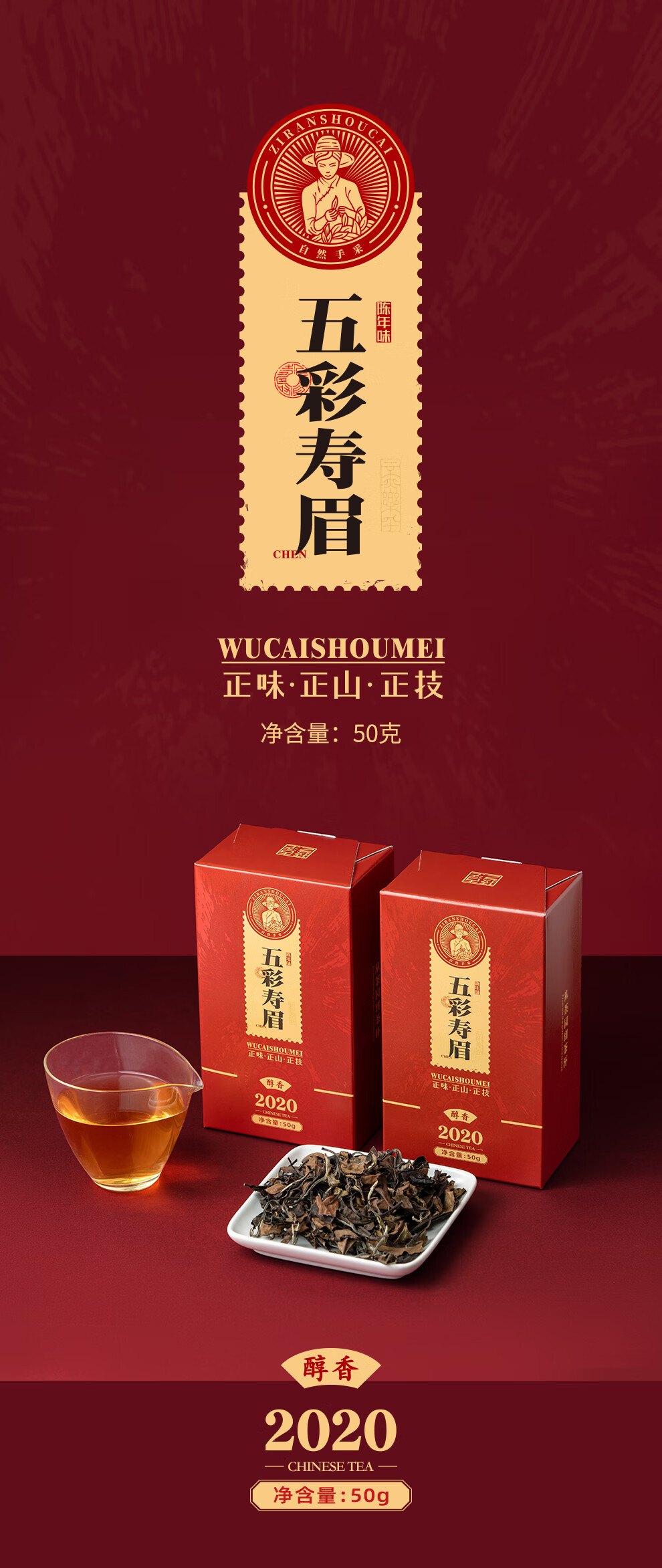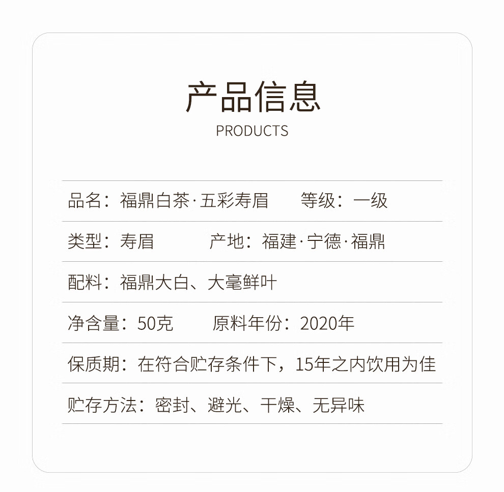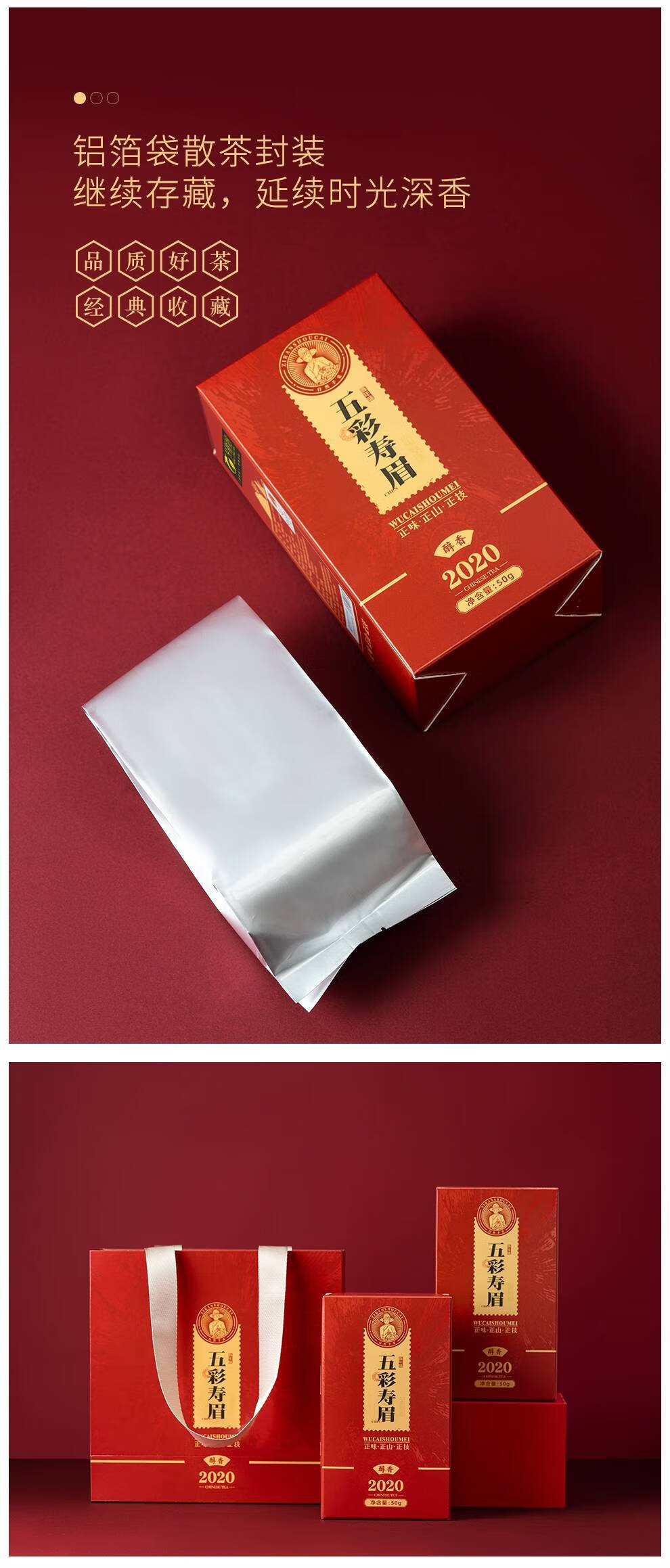 梦龙韵福鼎白茶2020年老白茶五彩寿眉礼盒款精致伴手茶礼 【伴手礼】五彩寿眉50g*2盒+礼袋