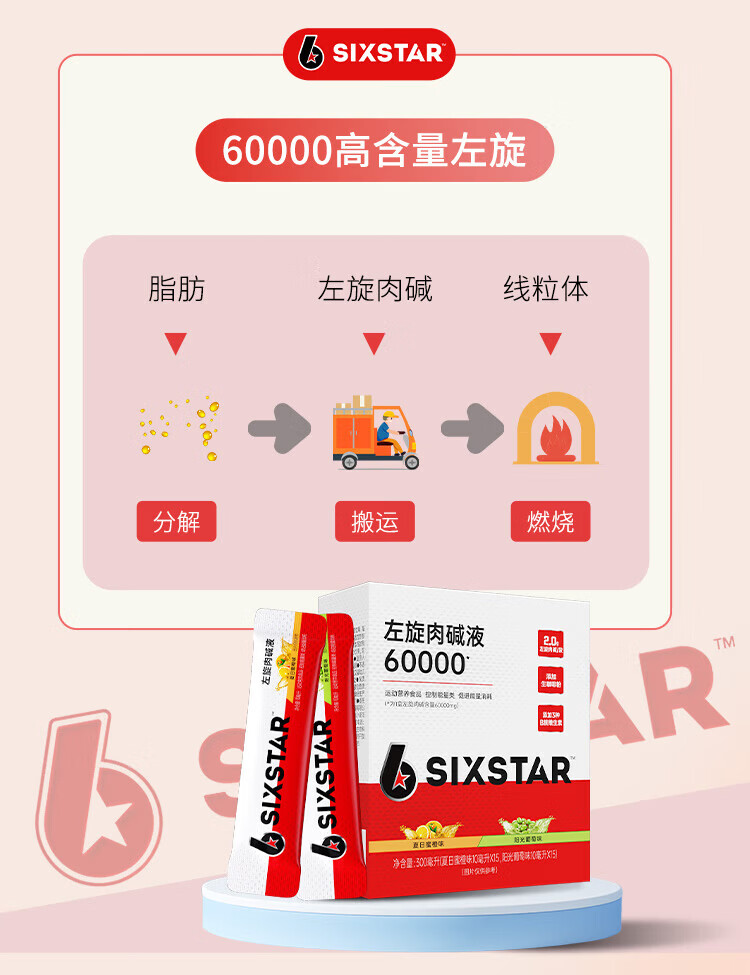 肌肉科技六星左旋肉碱60000官方正品六万左旋液体有氧健身运动营养饮料 【买三送一120天】左旋6W混合口味 30条*3盒