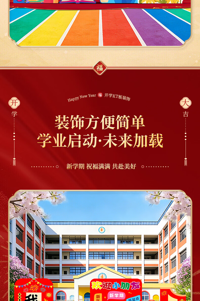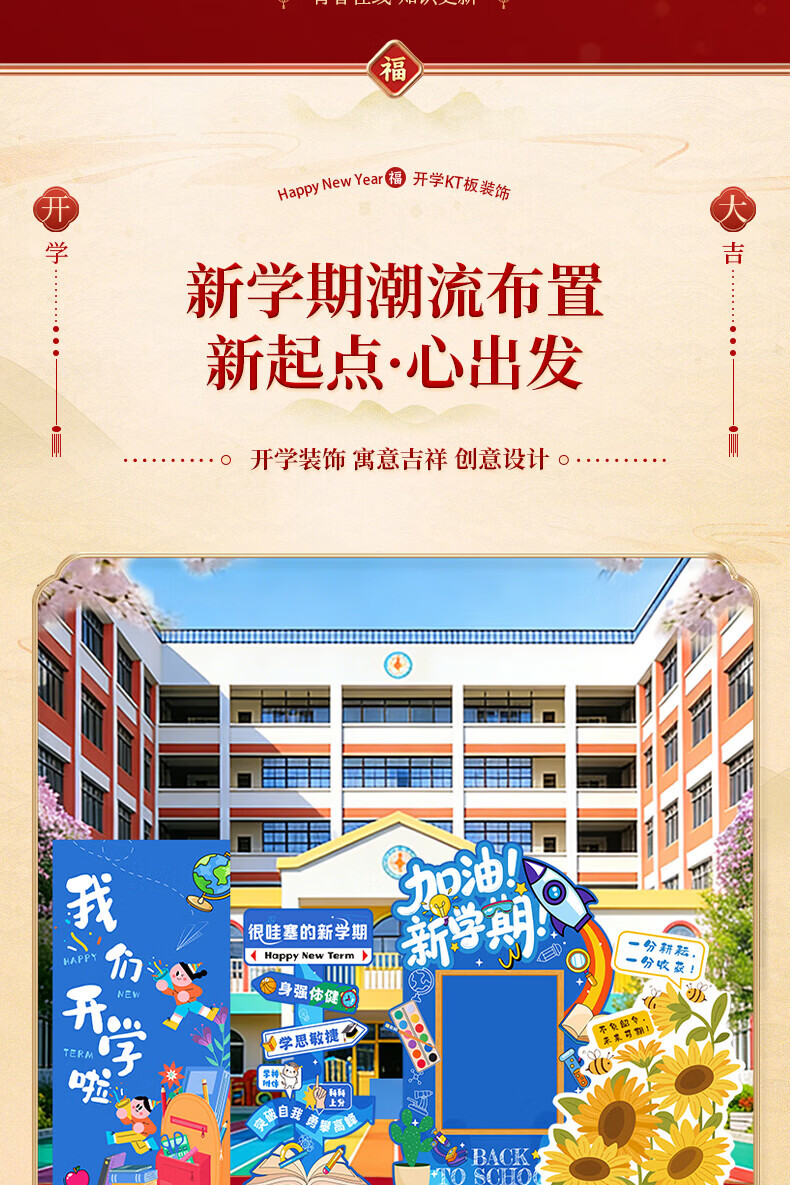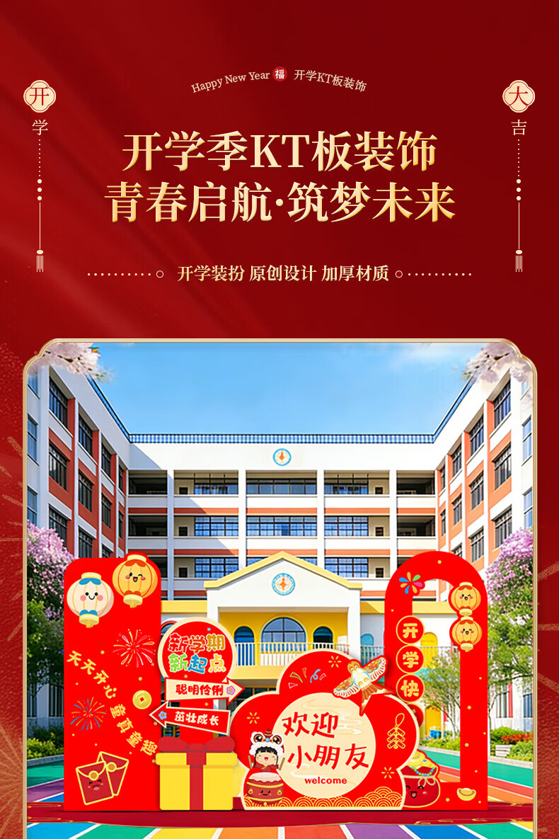 千棵树幼儿园学校春季开学季典礼场景氛围布置装饰活动拍照背景墙kt展板 【KT板背景墙+蜂窝球】欢乐开学季 大套装