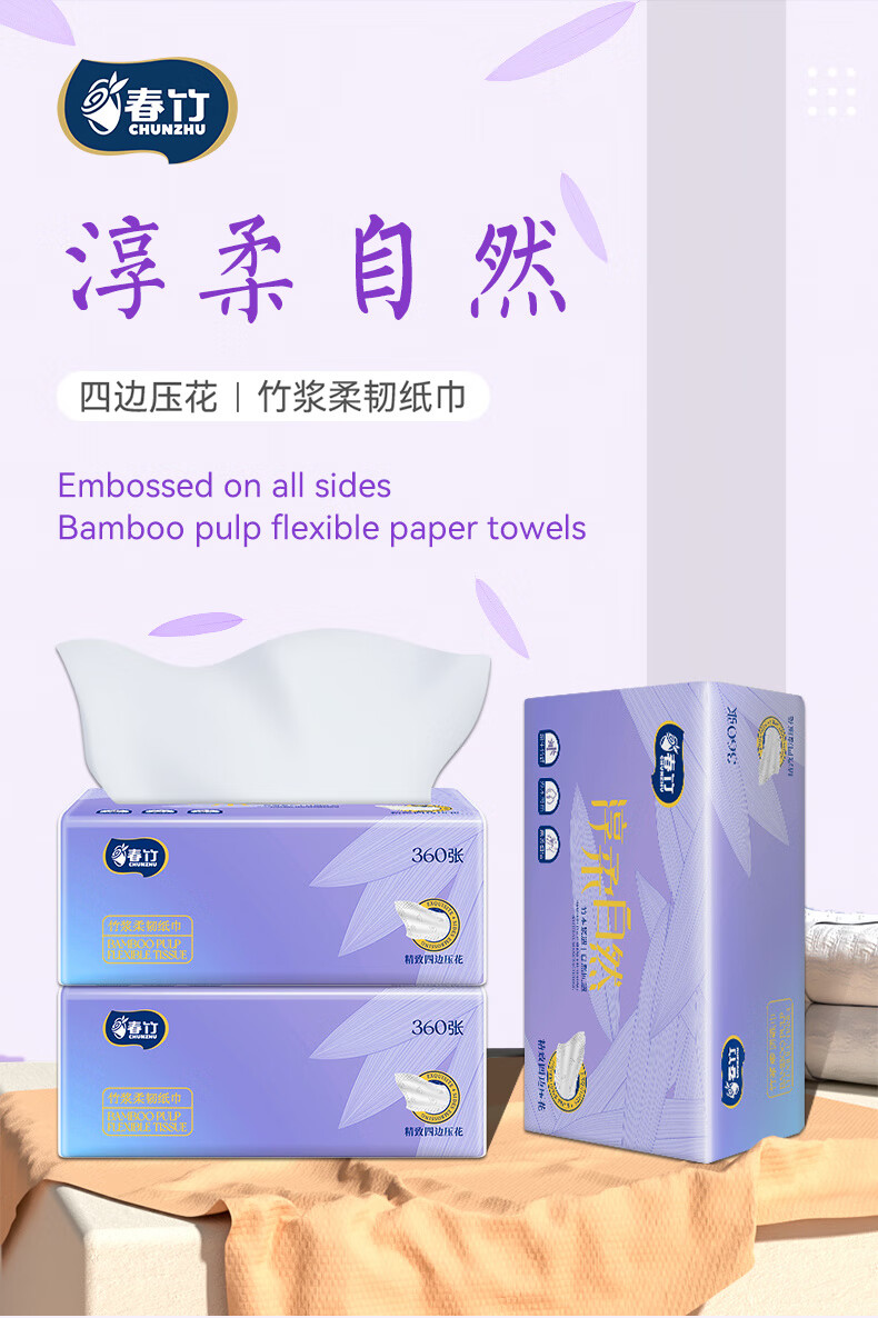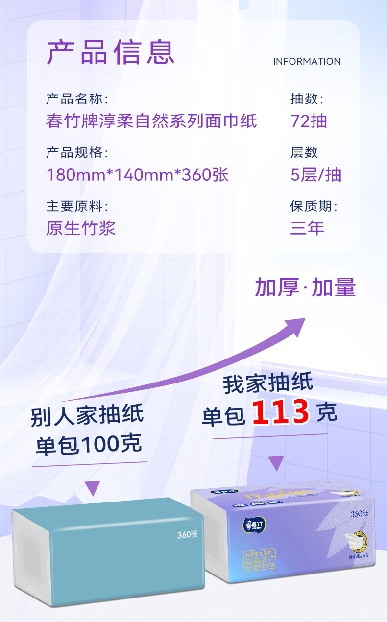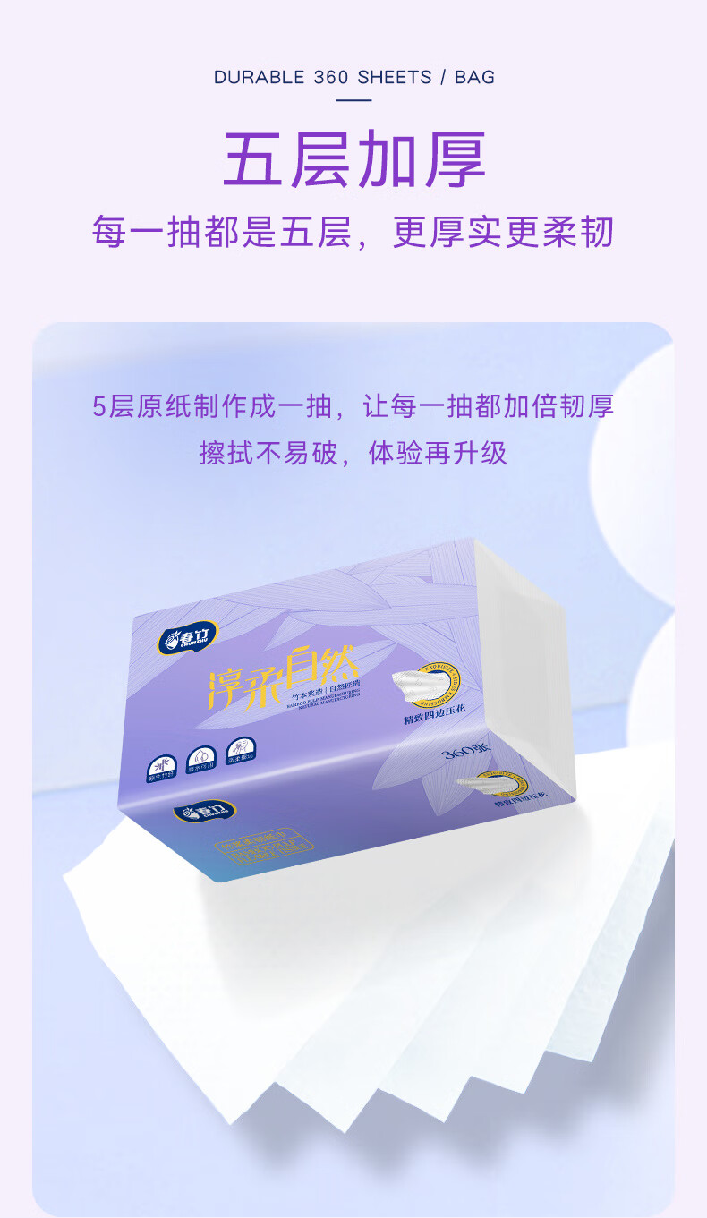 春竹抽纸淳柔自然家用5层加厚餐巾纸大包高品质母婴卫生纸整箱 【经典热销款】 5层 360张*21包