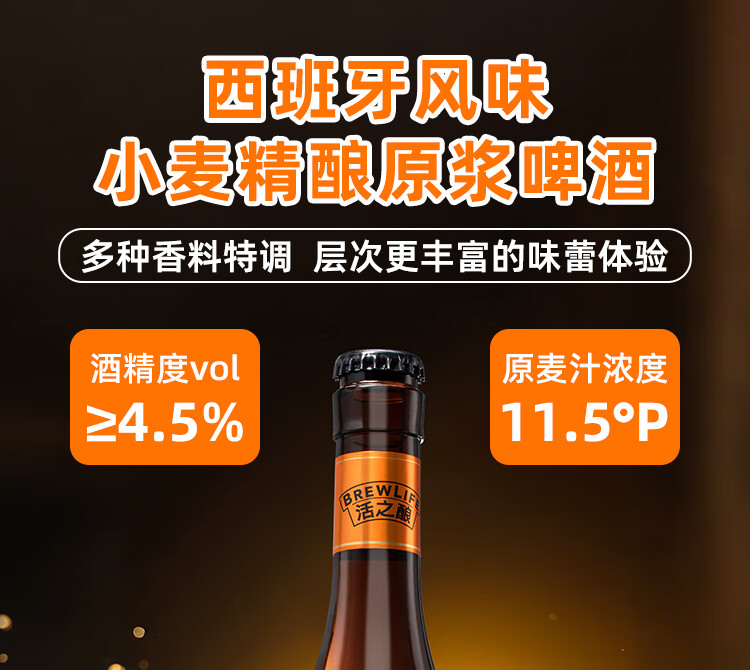 活之酿西班牙风格小麦啤酒11.5°P精酿原浆750ml*2,750ml*6整箱包邮 品牌正品,假一赔十 750mL 6瓶