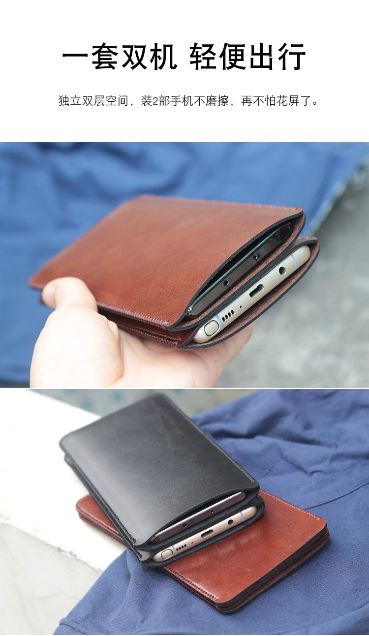 酷件适用简约双手机收纳包苹果15promax二合一套iPhone14promax两部手机直插内胆包竖款超 特大黑色 装2部17*8*1.2cm内手机 其他