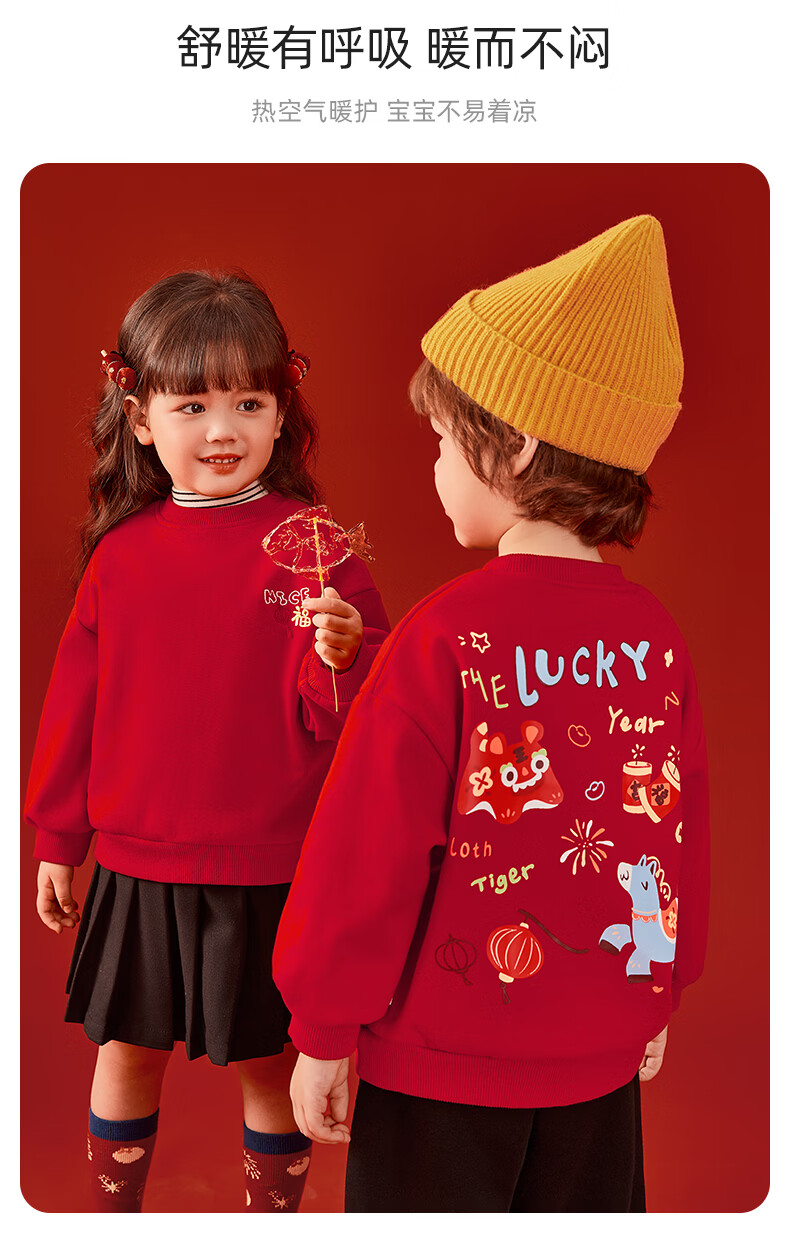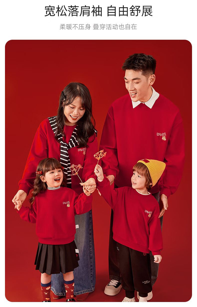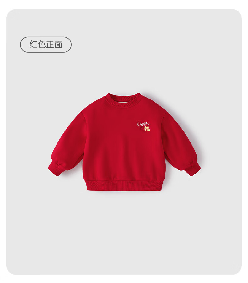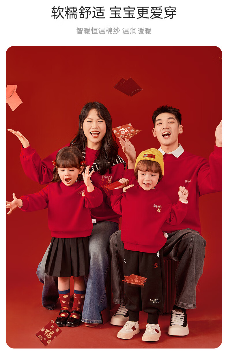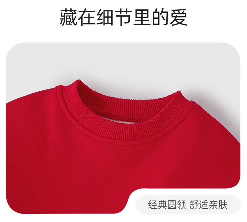 JELLYBABY【7A抗菌喜庆加绒圆领卫衣】25新品冬款男女童亲子装大童 红色 150