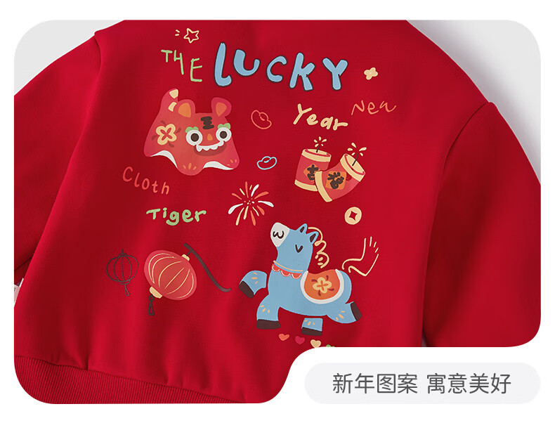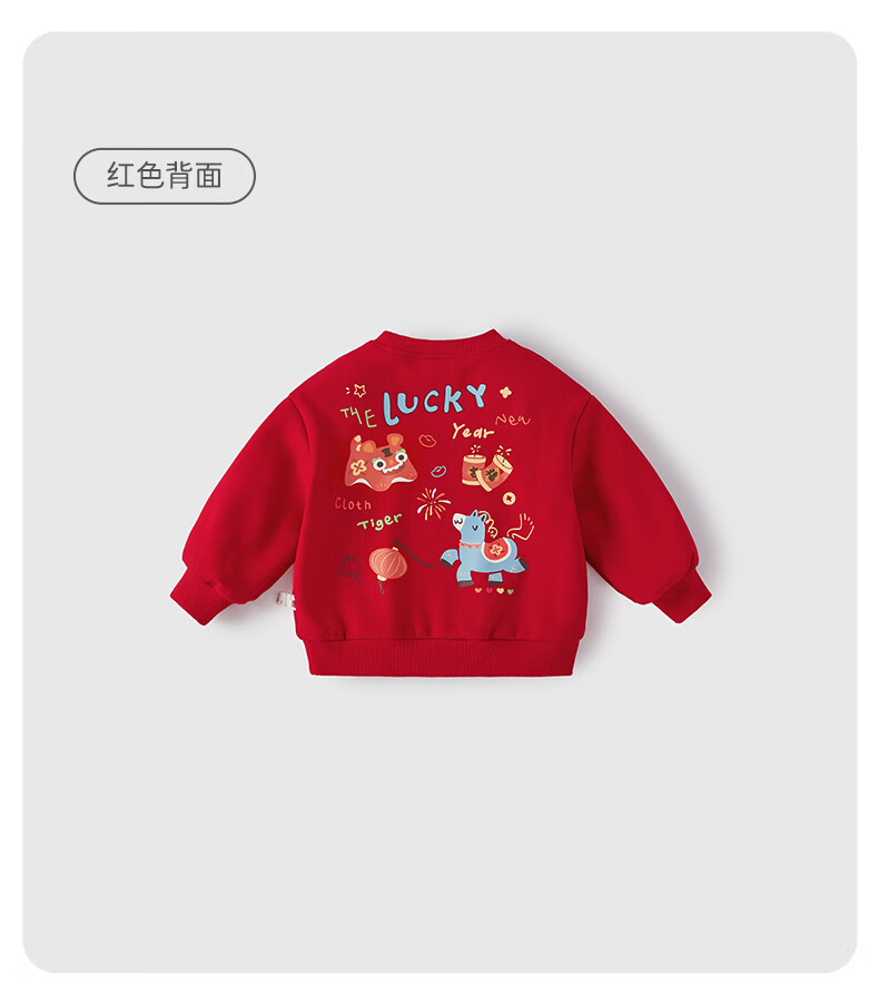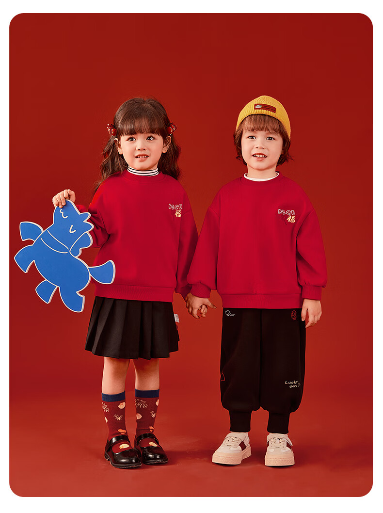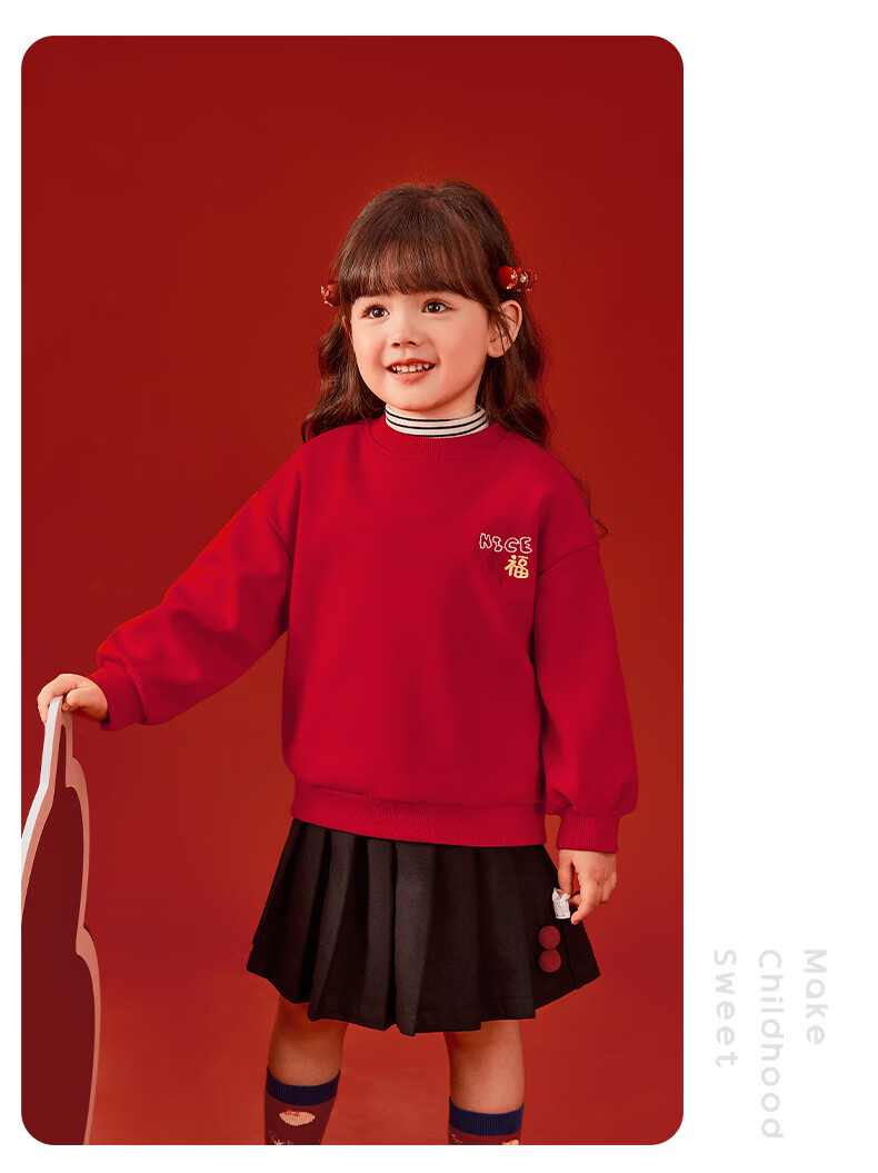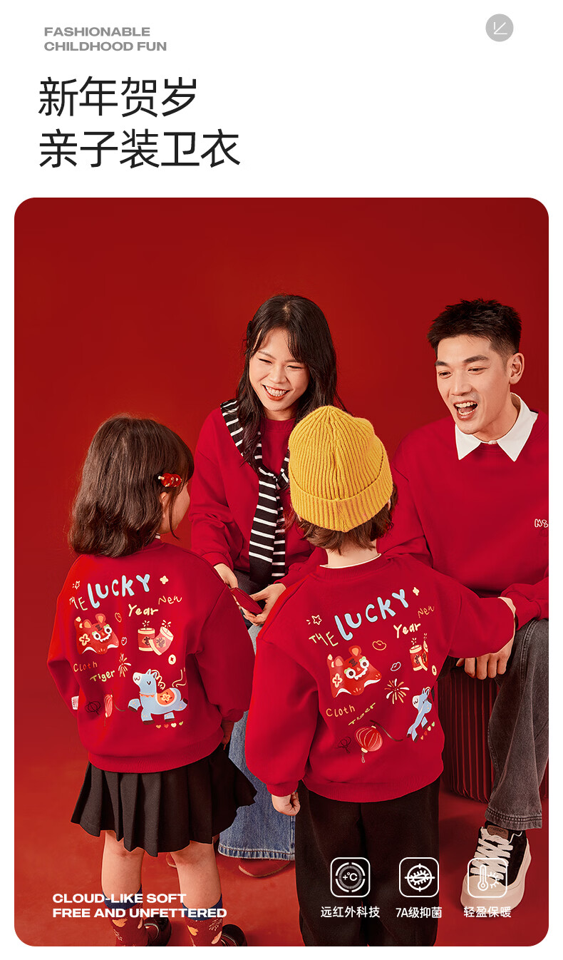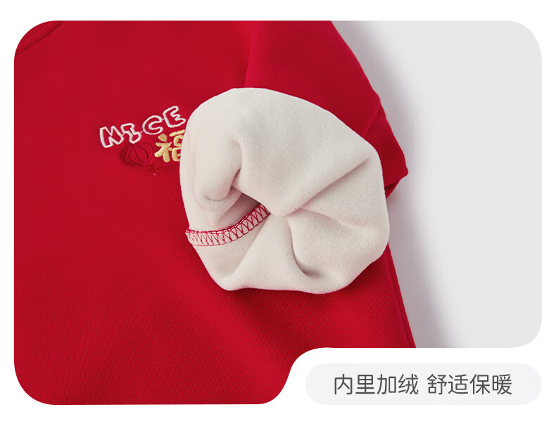 JELLYBABY【7A抗菌喜庆加绒圆领卫衣】25新品冬款男女童亲子装大童 红色 150