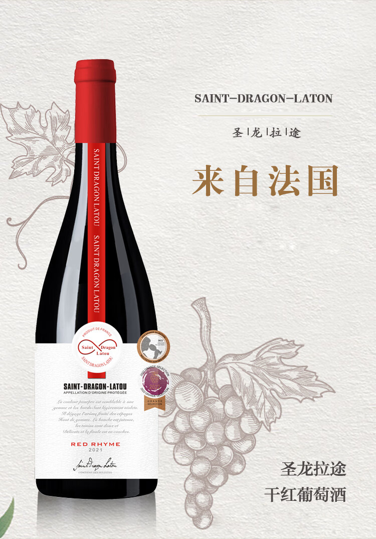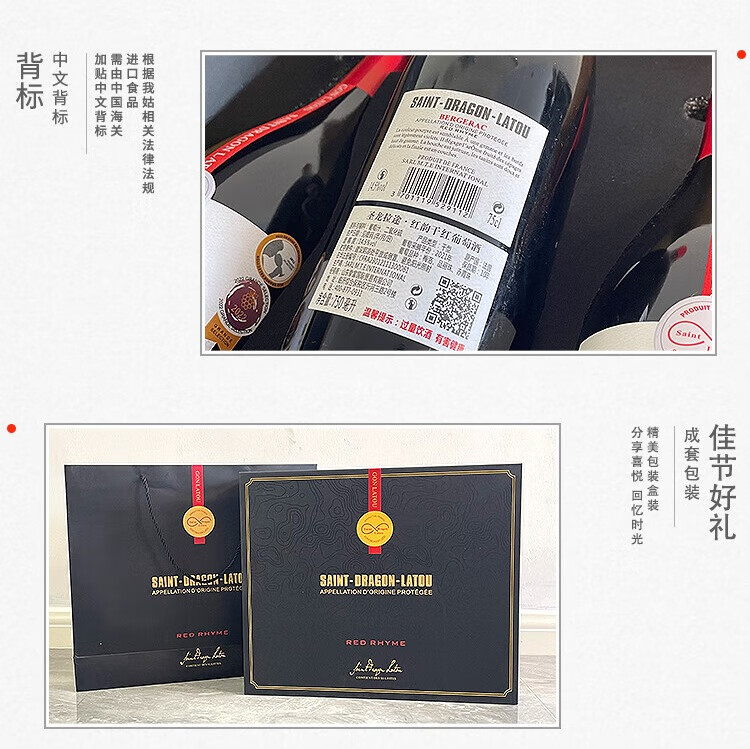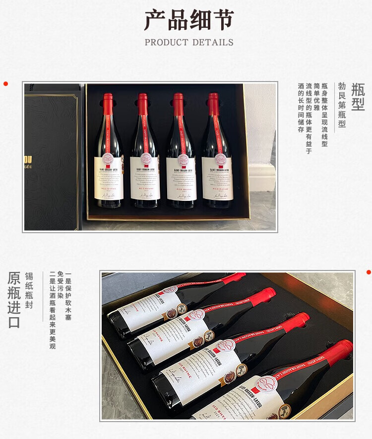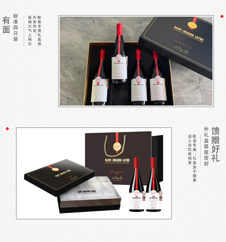 圣龙拉途法国进口红酒AOP干红葡萄酒2021年份赤霞珠混酿750ml 4支礼盒装