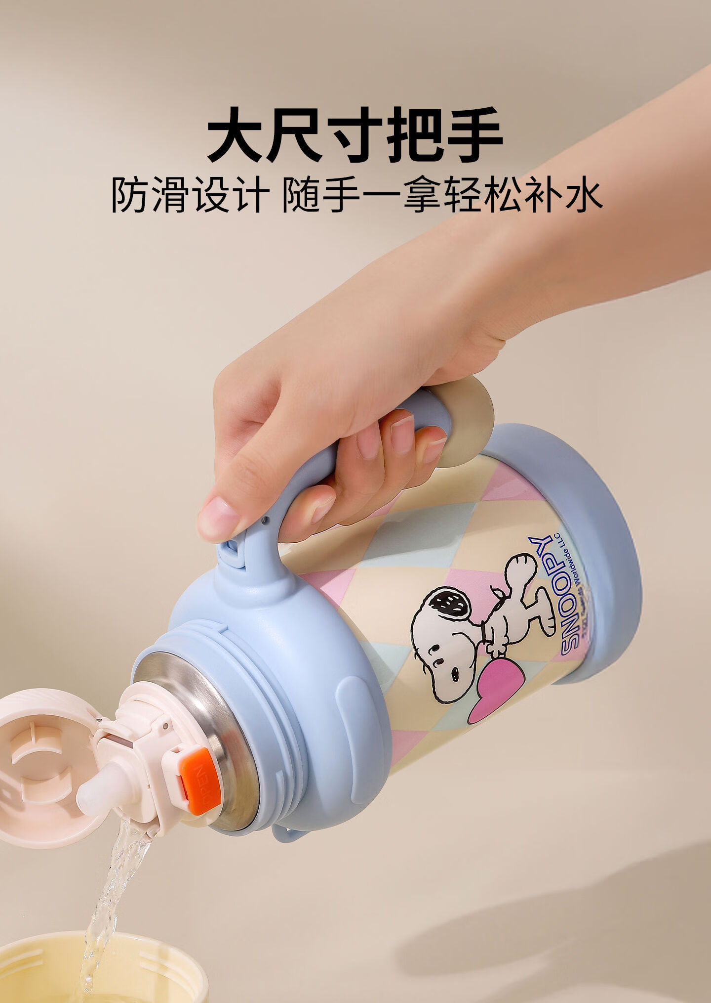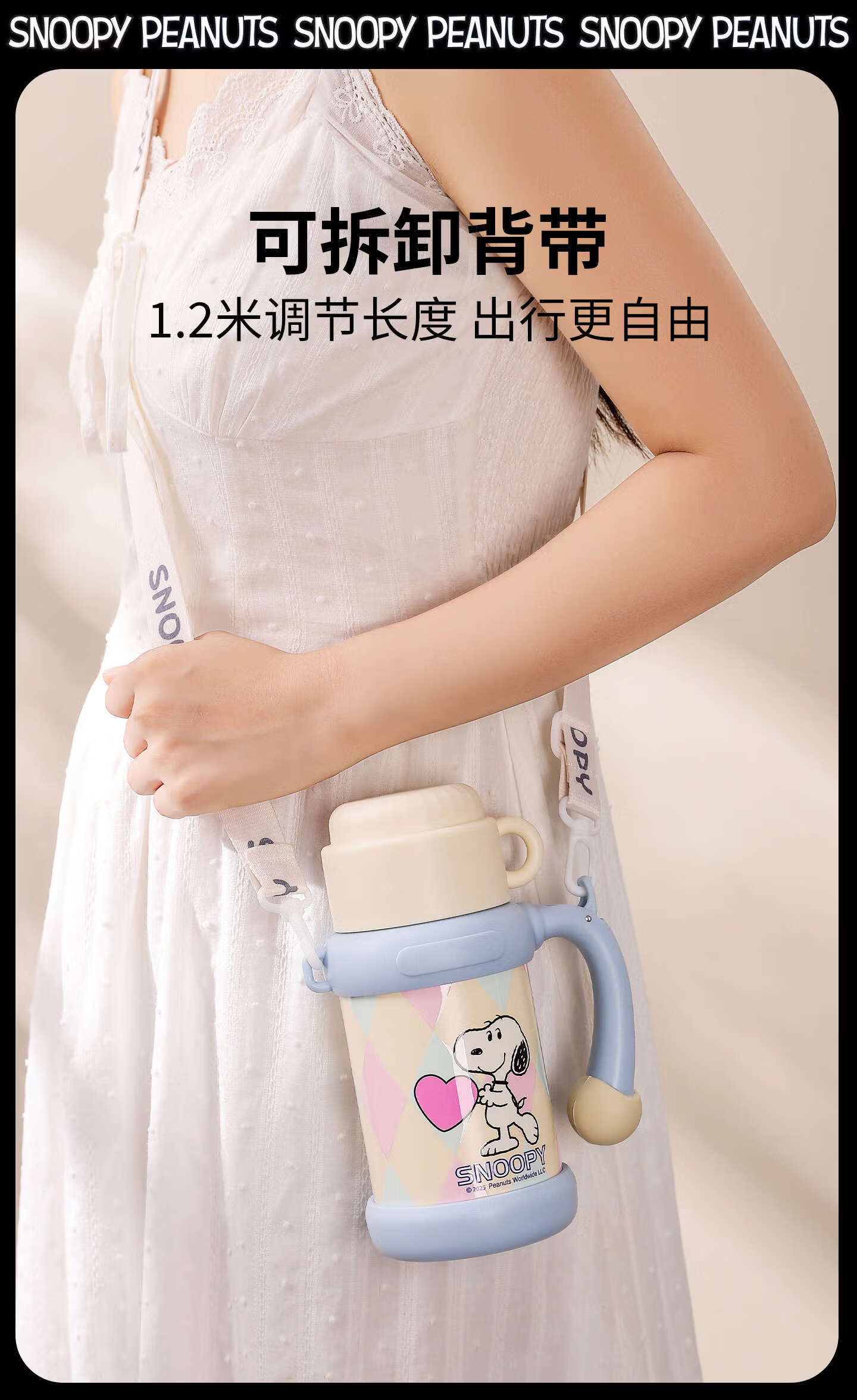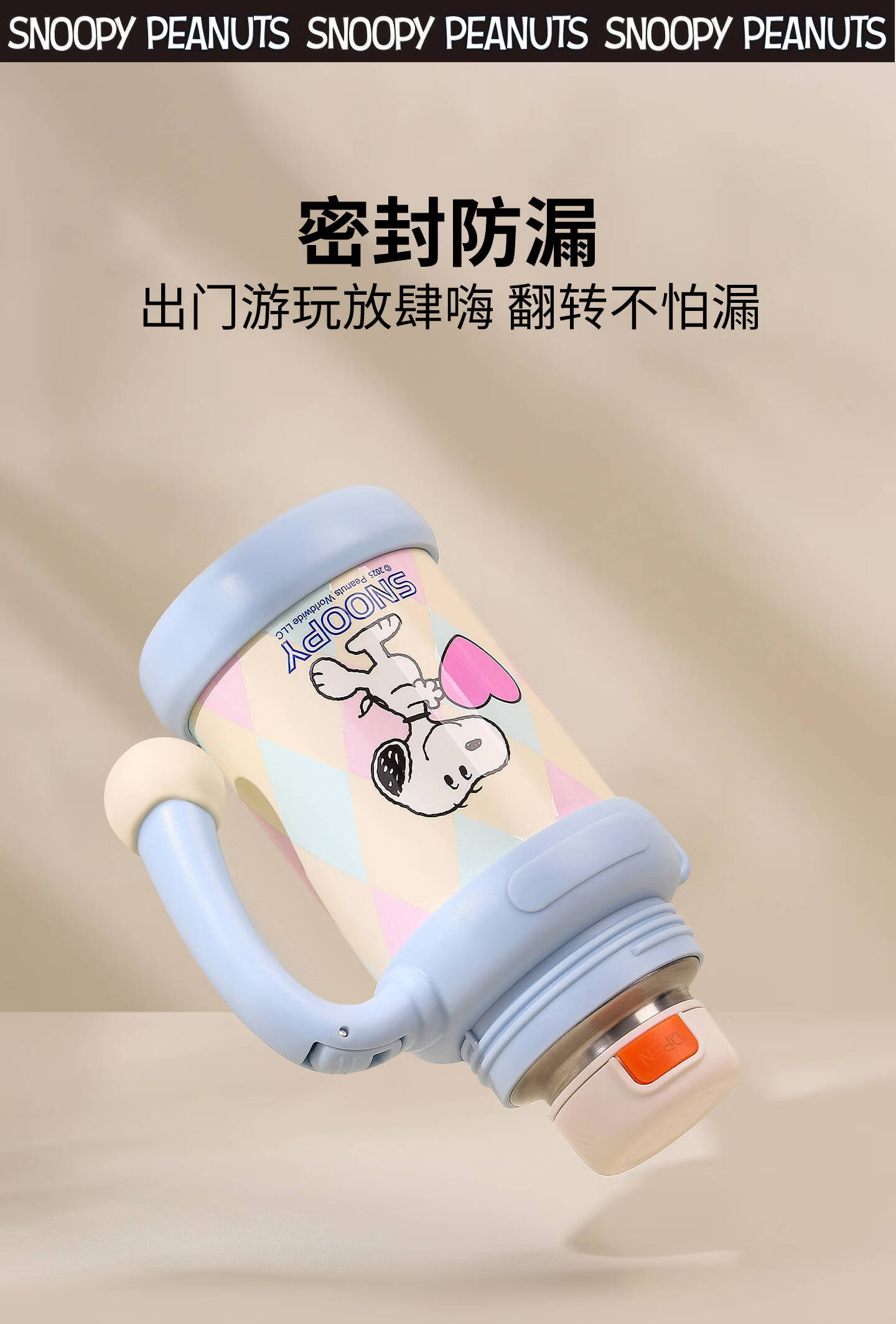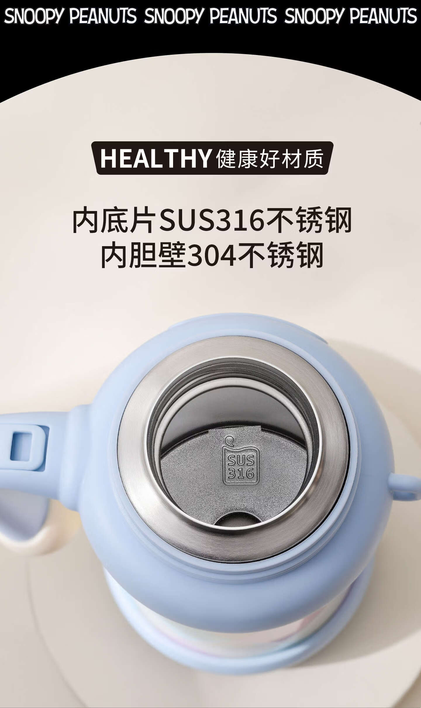 史努比(SNOOPY)史努比保温杯女316泡茶杯办公室水杯带手柄提绳马克杯茶水分离杯 蓝白 650ml把手星星杯