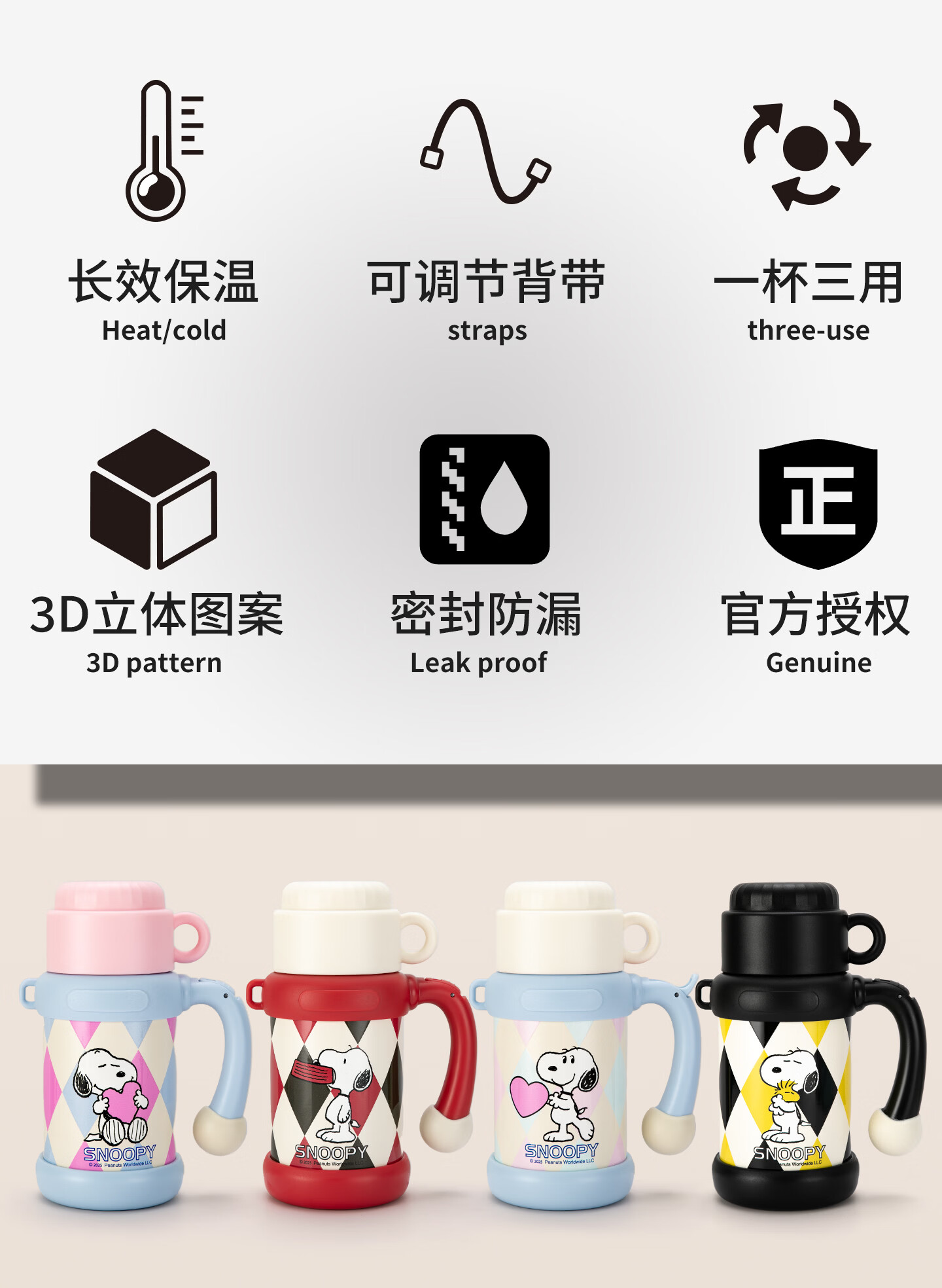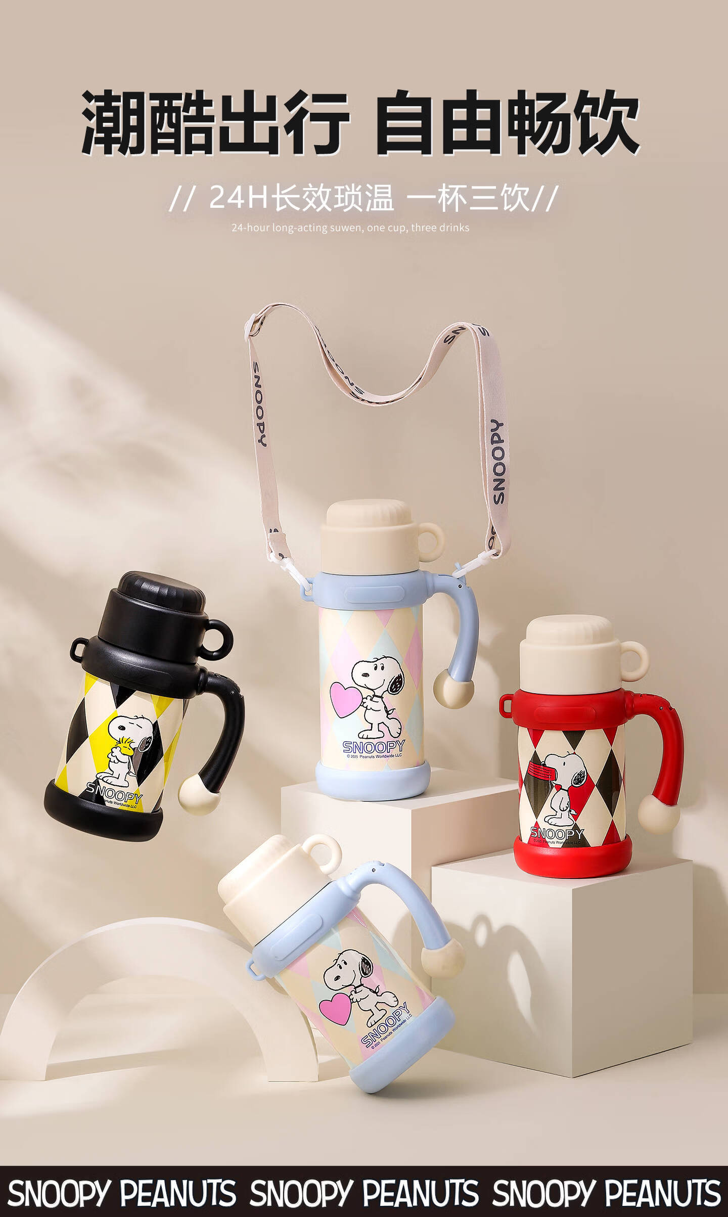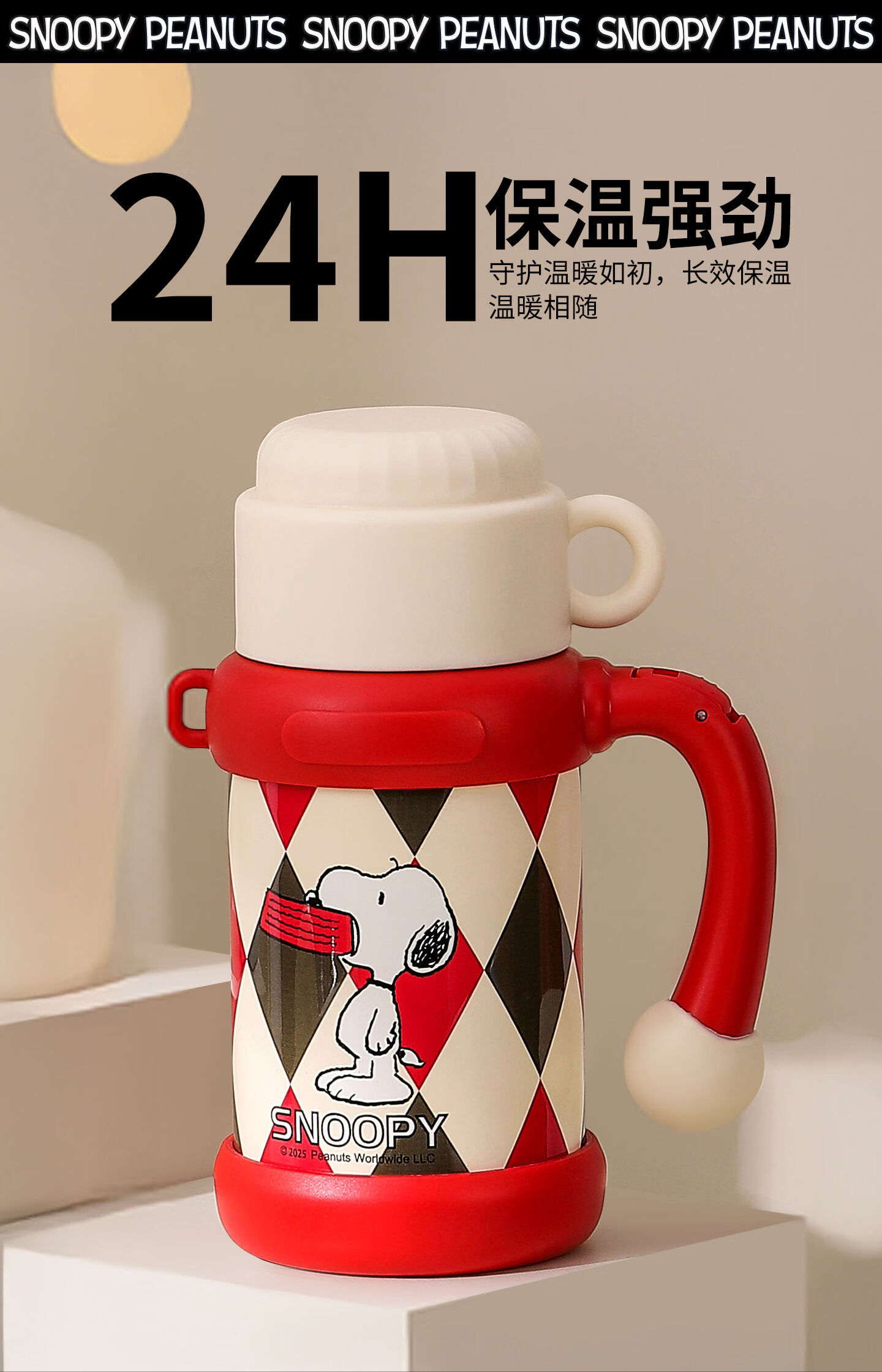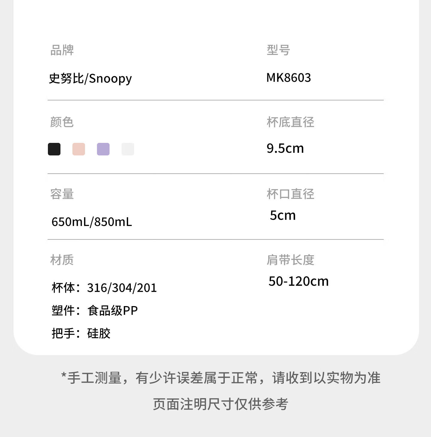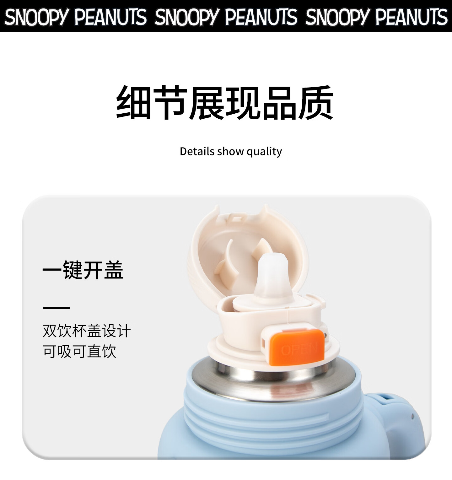 史努比(SNOOPY)史努比保温杯女316泡茶杯办公室水杯带手柄提绳马克杯茶水分离杯 蓝白 650ml把手星星杯