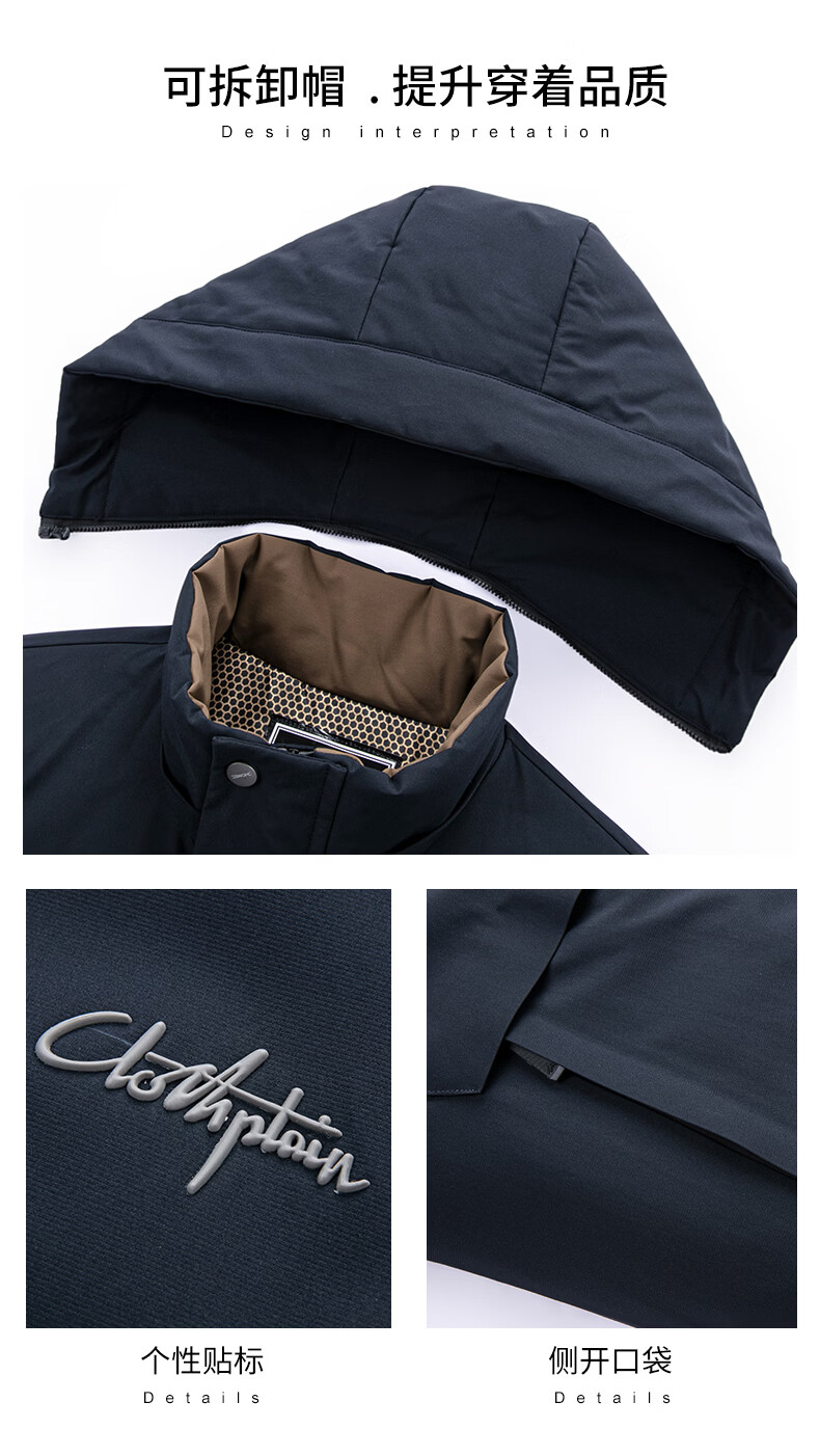 罗蒙(ROMON)可拆卸连帽羽绒服男外套2025冬季新款保暖加绒男士鸭绒男装上衣 黑色 XL (建议体重115-130斤)