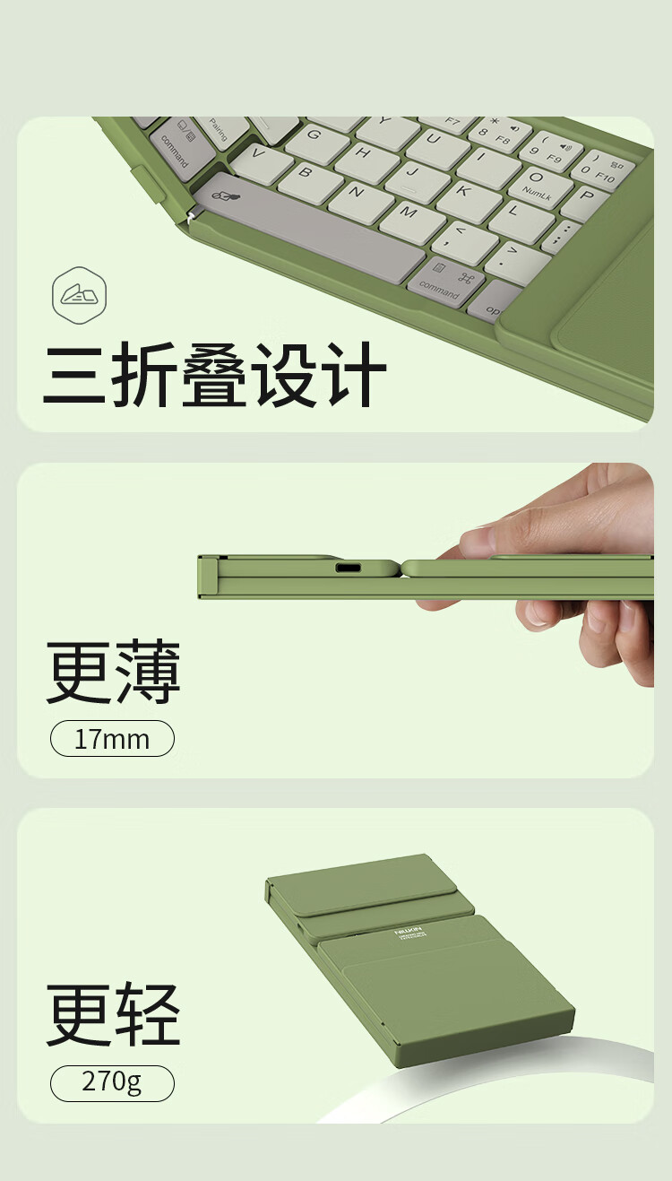 耐尔金 折叠键盘无线蓝牙便携键盘三折叠触控板数字键迷你静音iPad平板华为小米苹果荣耀手机键盘马年 蓝色