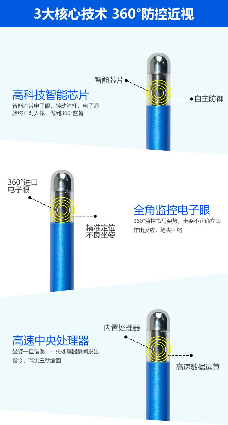 蜗牛向上正姿护眼笔林文老师防近视笔智能笔小学生儿童纠正坐姿防低头自动铅笔中性笔防驼背坐姿不正写不出 蓝色