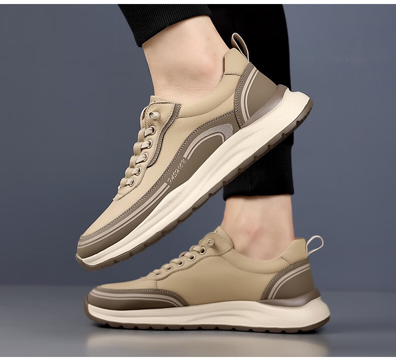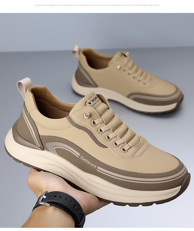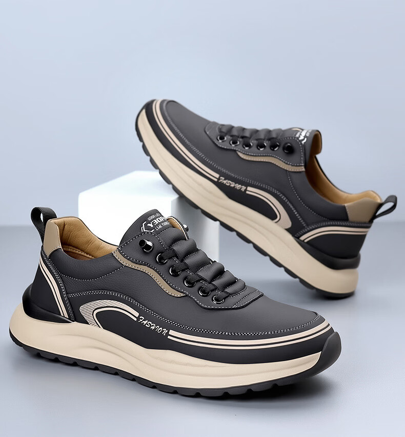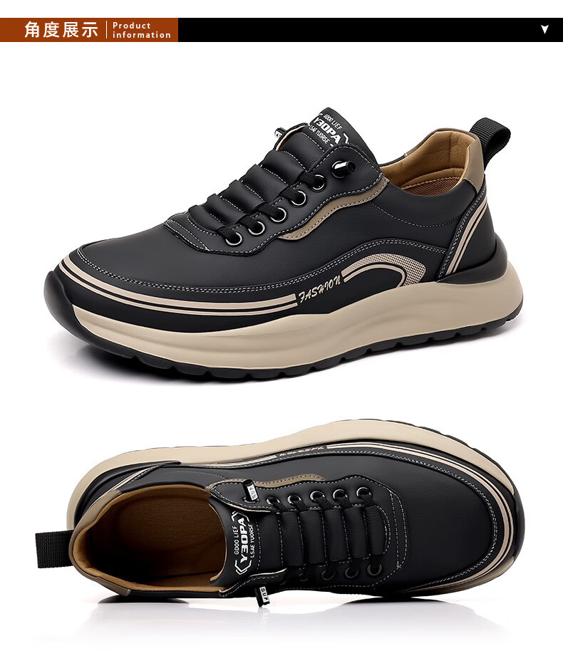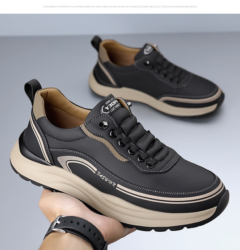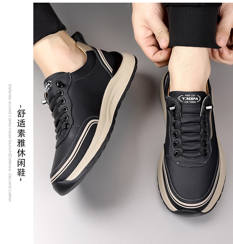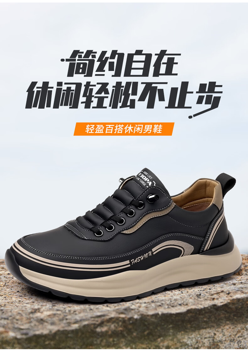 西域骆驼(VANCAMEL)男鞋冬季新款皮面老爹鞋男士百搭休闲鞋男软底运动鞋子男潮鞋耐磨 【官方正品 质量保证】黑色配色 43