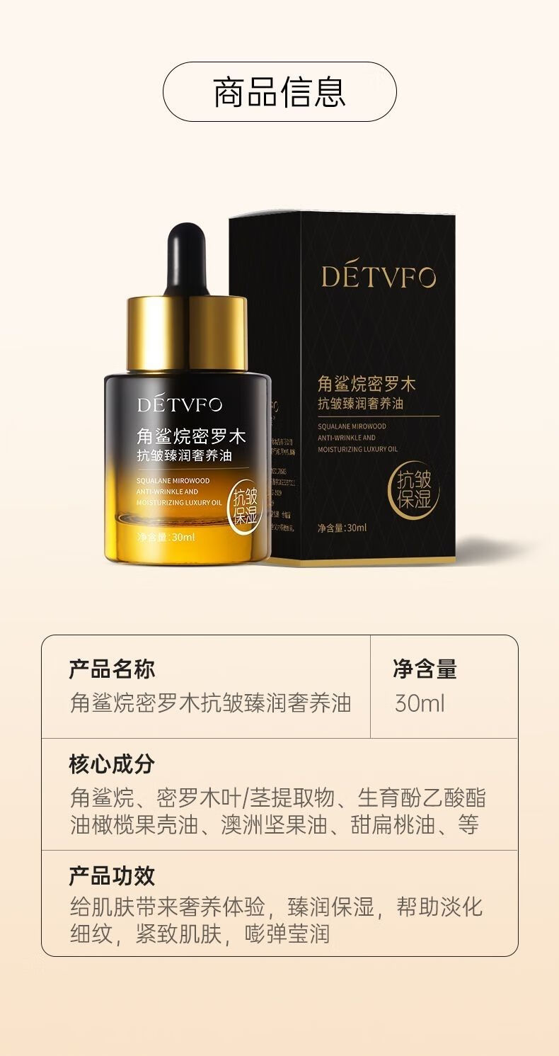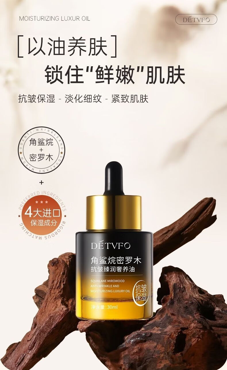 德德维芙角鲨烷脸部精华油毛孔收缩精华液抗皱紧致精华抗衰老修护保湿补水 3瓶【保养装】