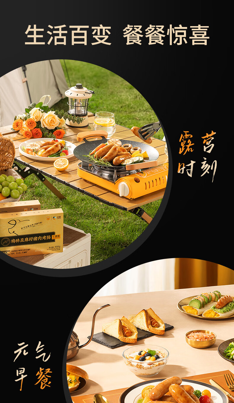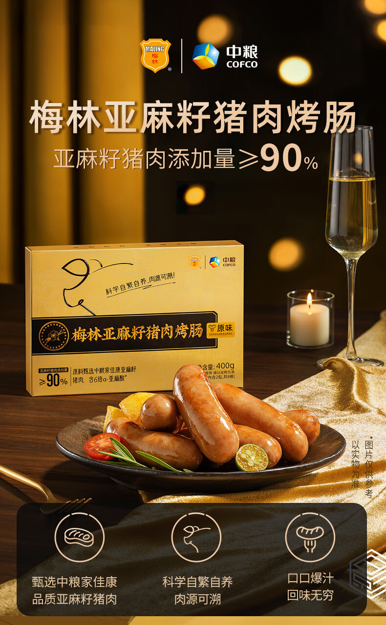 梅林亚麻籽猪肉烤肠 方便食品早餐烧烤火锅户外食材美味 科学自繁自养 亚麻籽猪肉烤肠400g*2盒-店长推荐