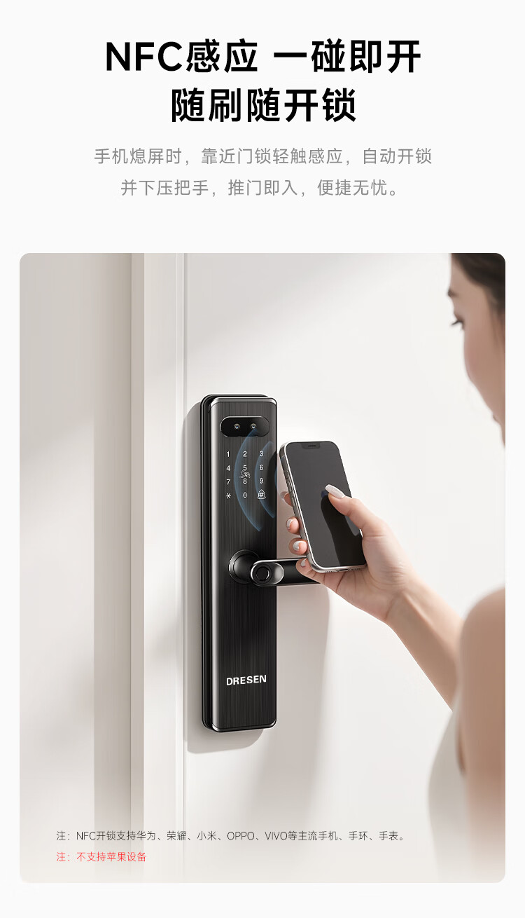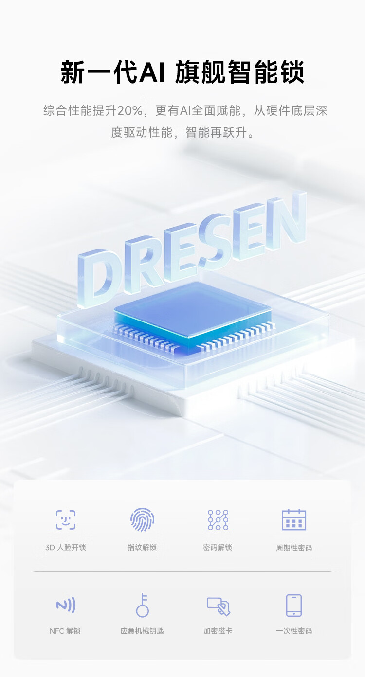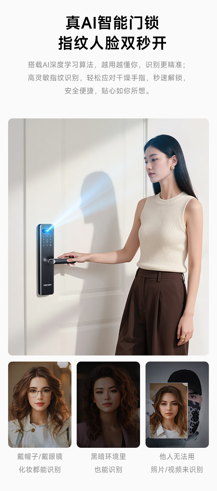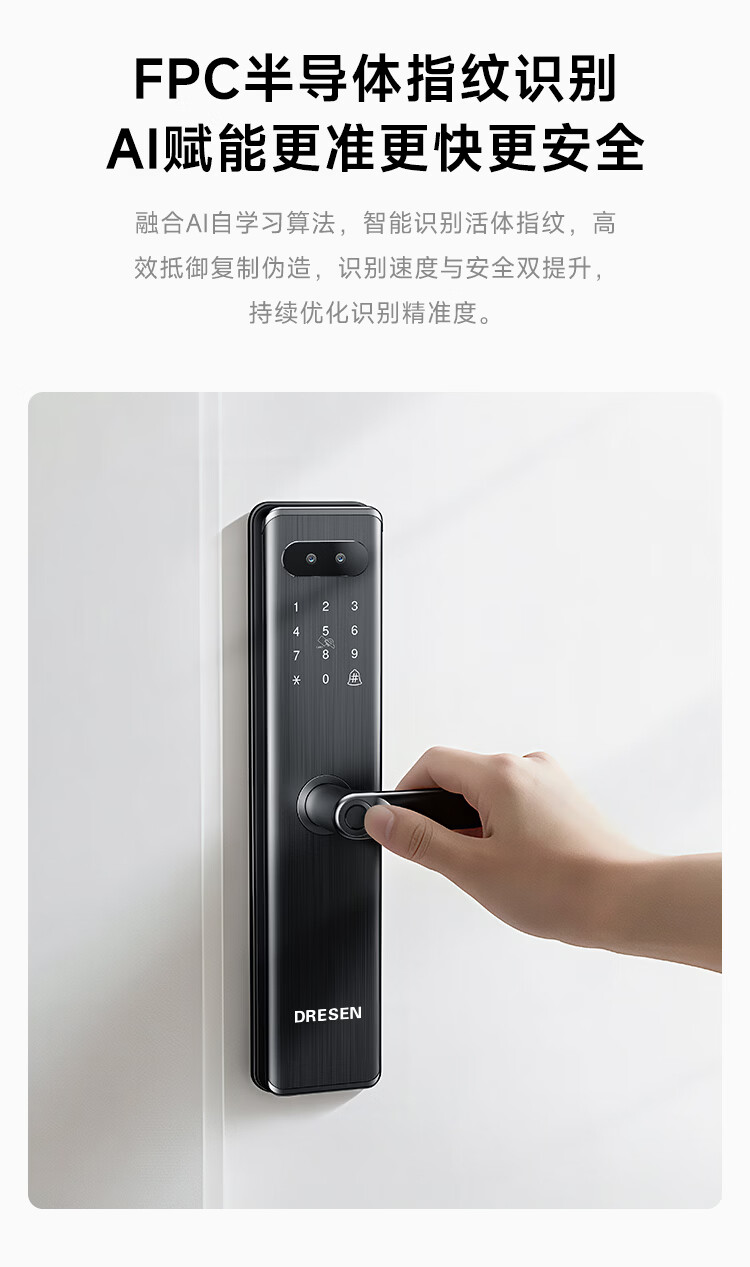 DRESEN智能门锁指纹锁3D人脸密码锁入户门智能锁家用防盗门锁木门电子锁 8合1开锁+防撬报警+免费安装