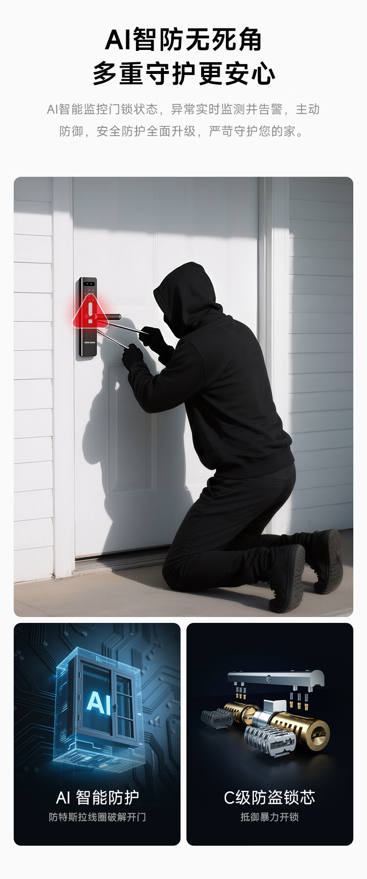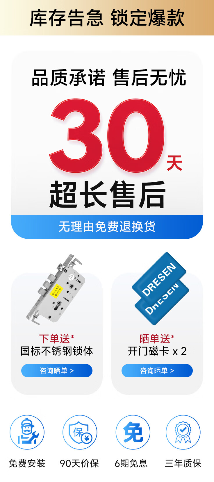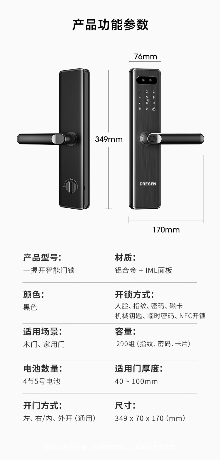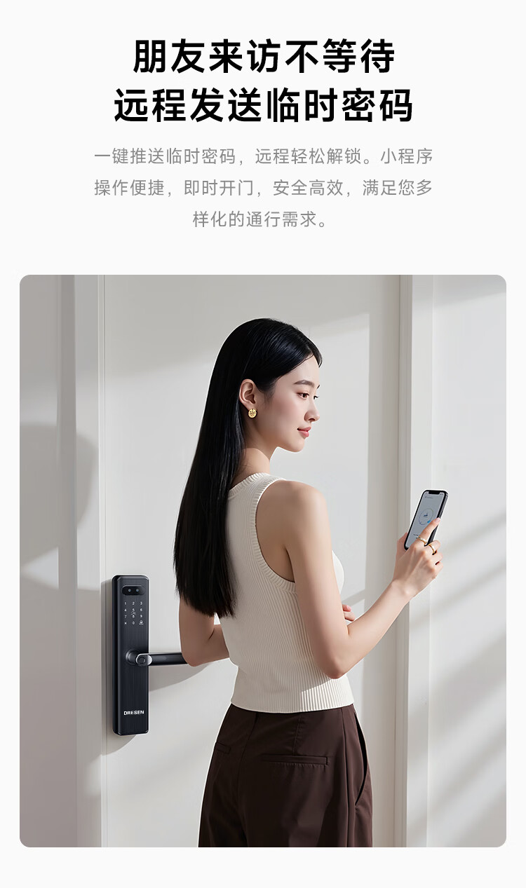 DRESEN智能门锁指纹锁3D人脸密码锁入户门智能锁家用防盗门锁木门电子锁 8合1开锁+防撬报警+免费安装