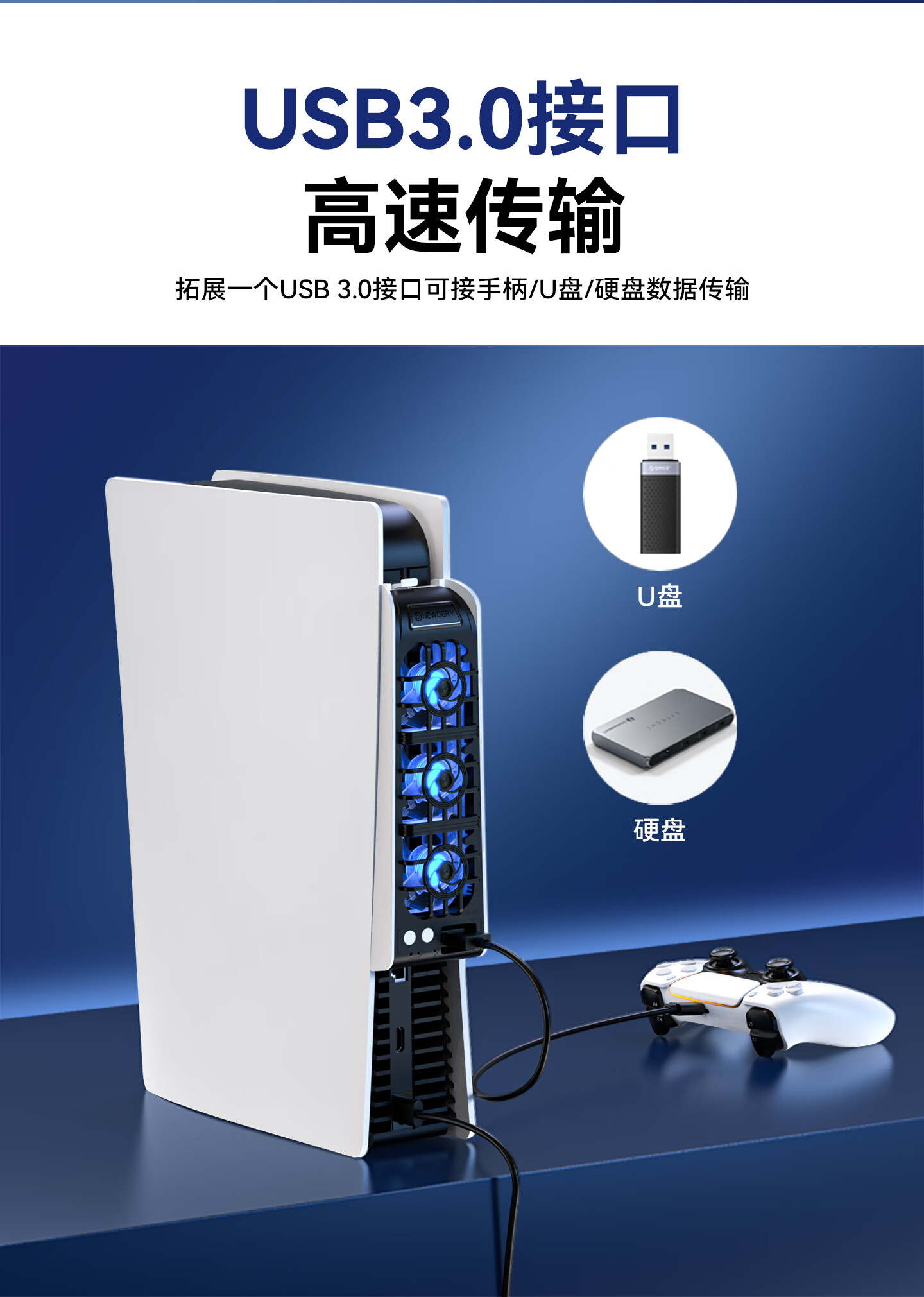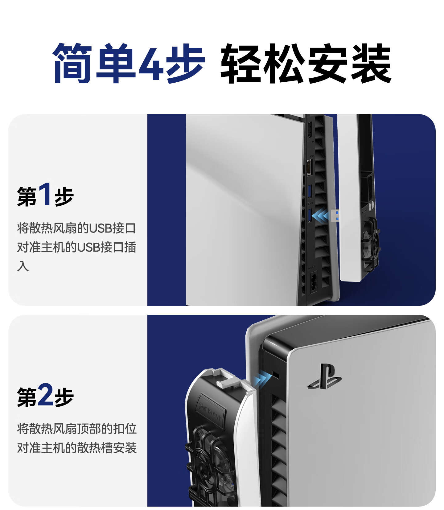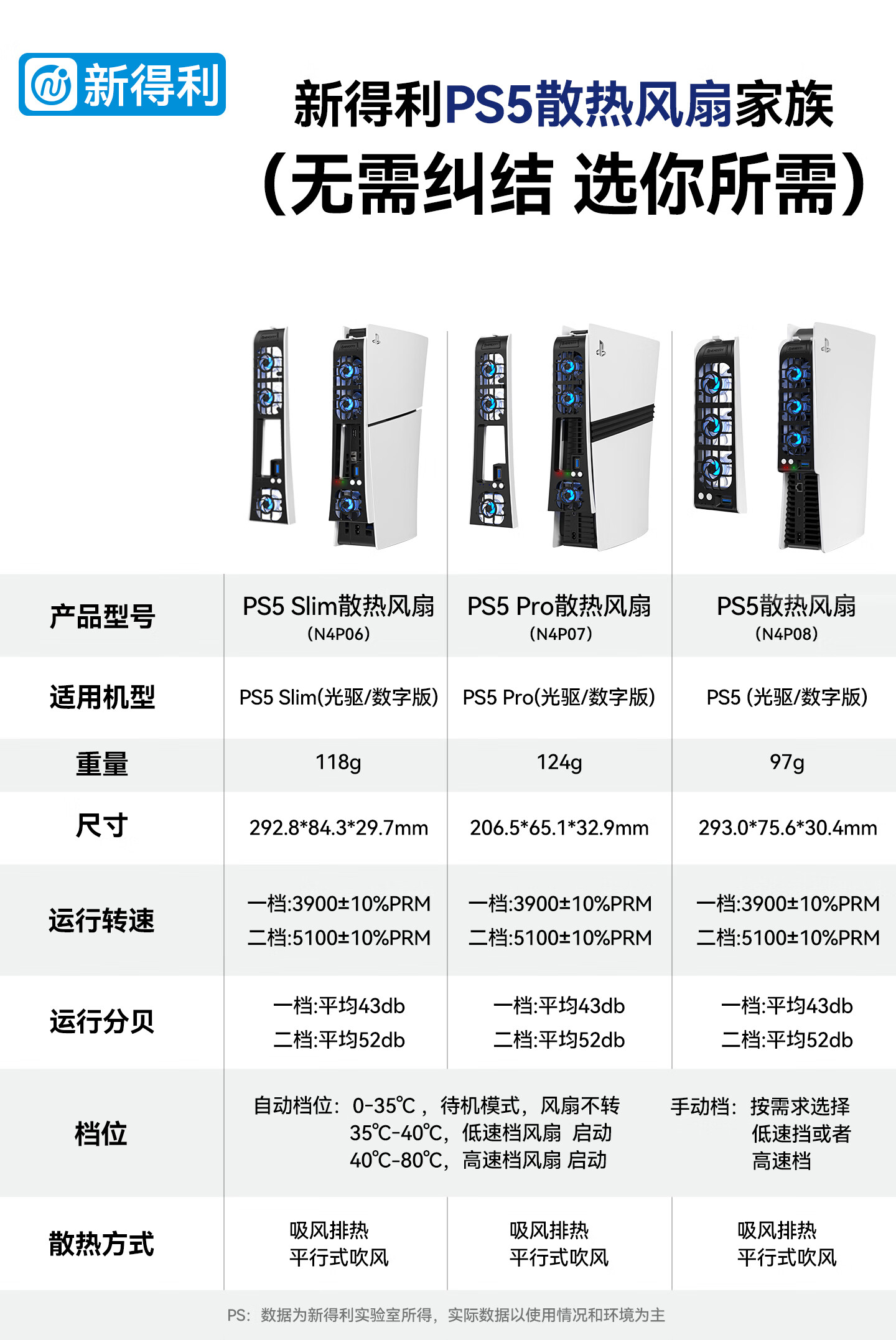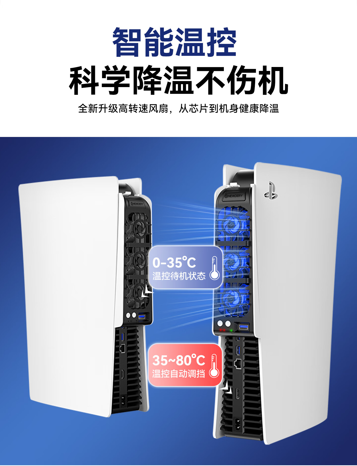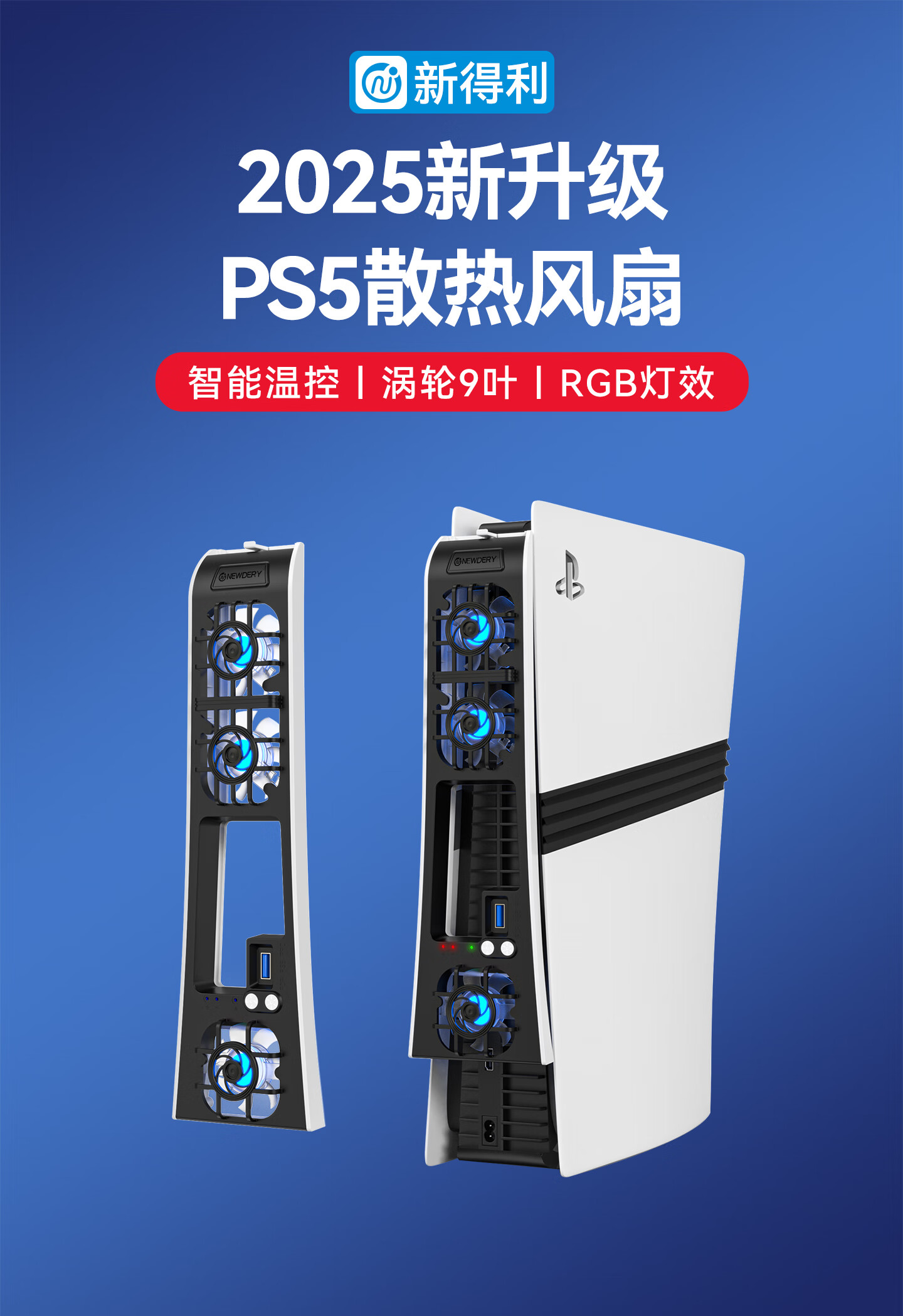 新得利PS5散热风扇Slim主机散热器PS5 Pro游戏机降温神器光驱/数字版通用Sony周边配件 PS5 Slim散热风扇