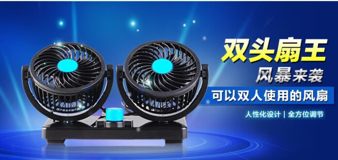 新款便携式风扇创意迷你风扇4寸双头360度旋转大风力风扇家居智能 USB插口