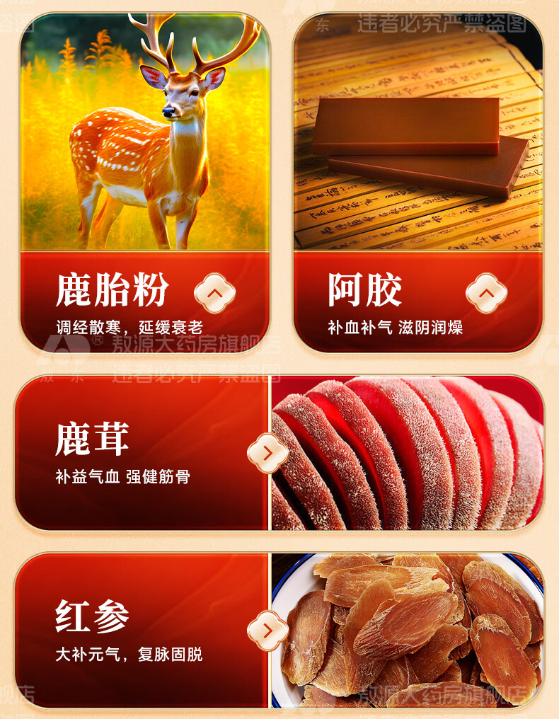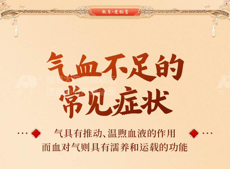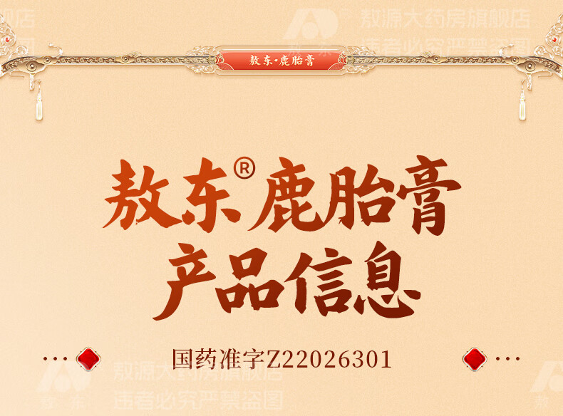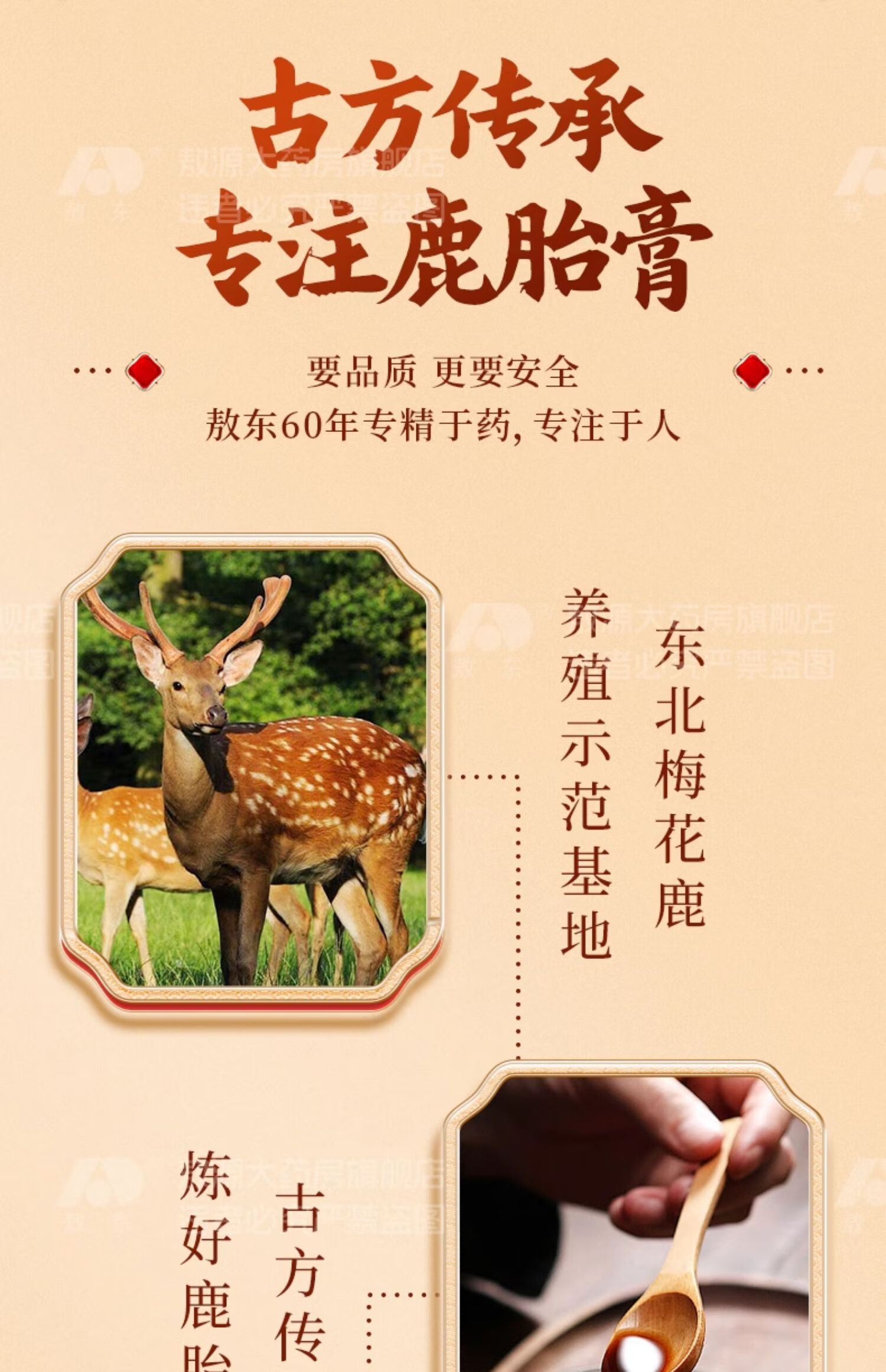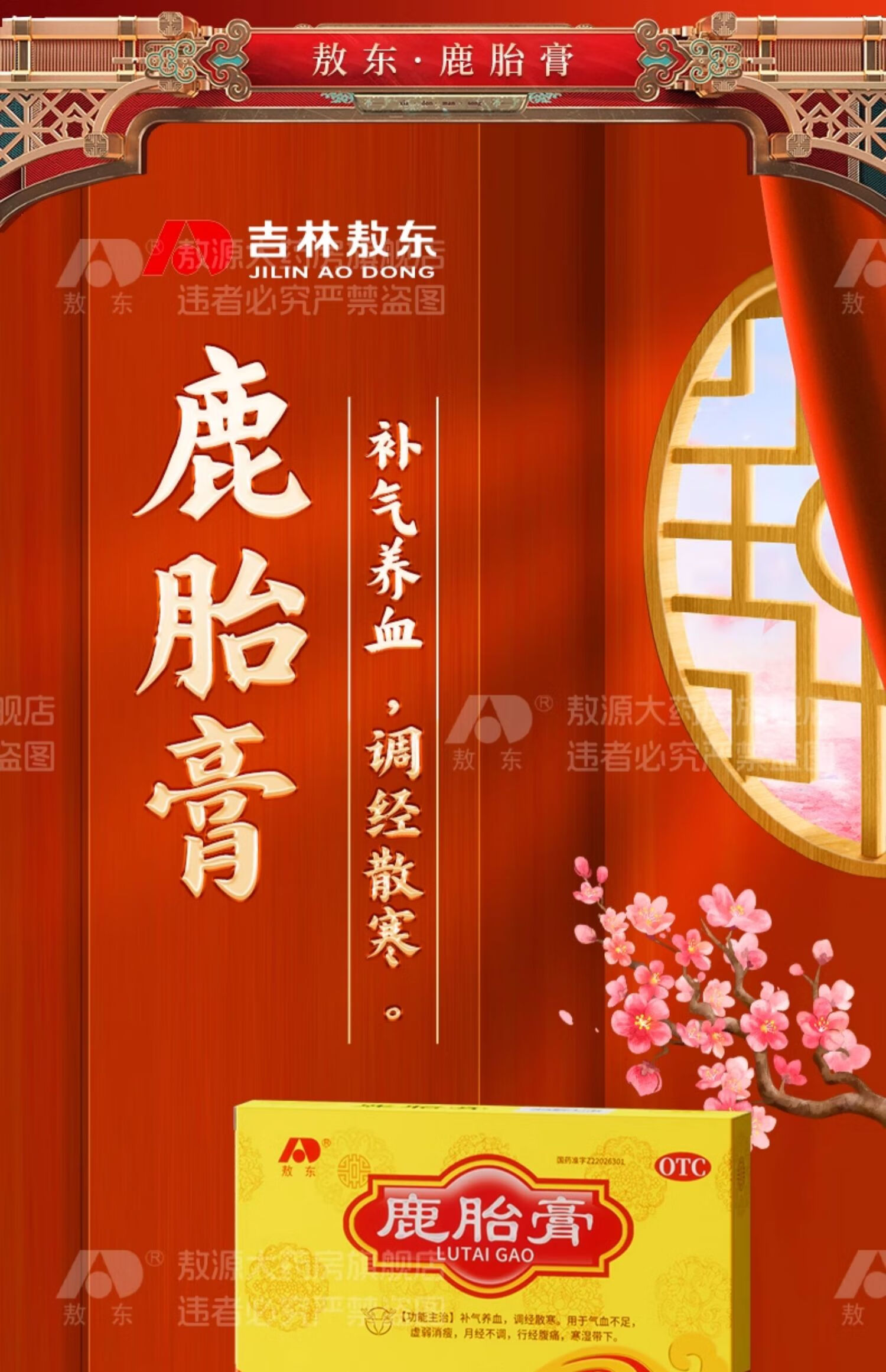 [敖东]鹿胎膏 50g*2块 2盒装 50g*2块/盒补气养血调经散寒气血不足月经不调痛经备孕涨内膜宫寒手脚凉怕冷睡眠差 敖东正品 假一赔十倍