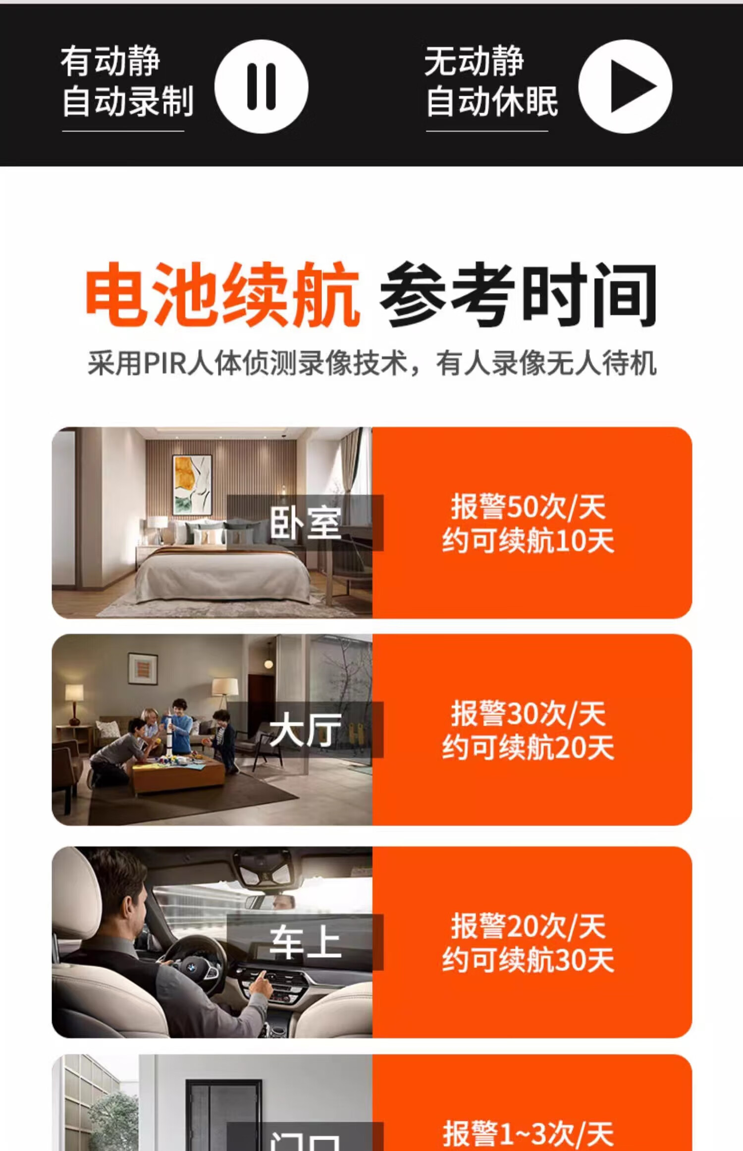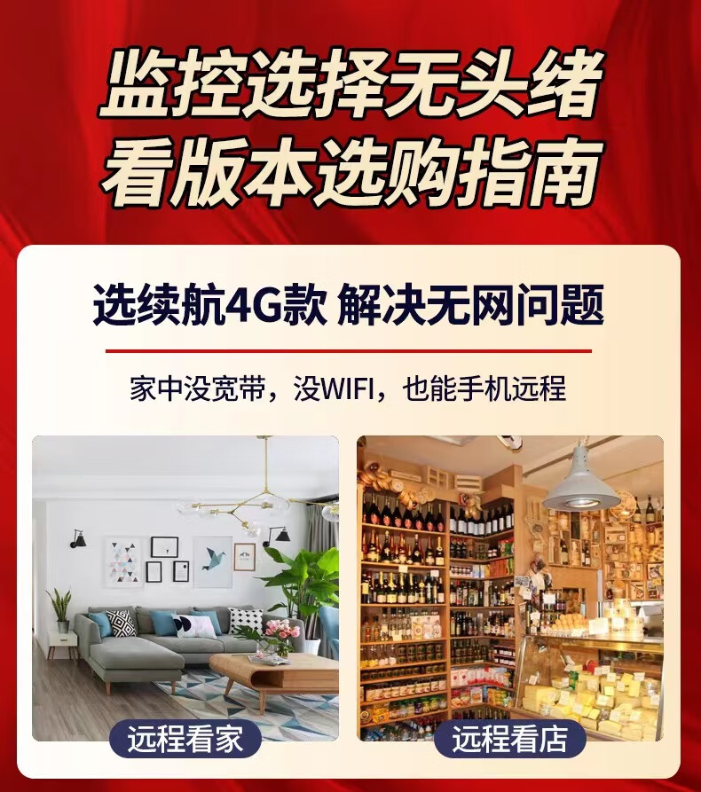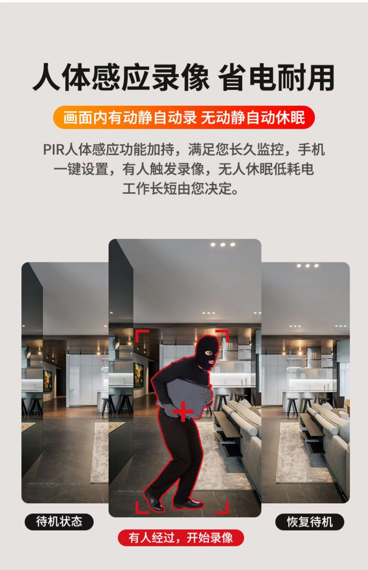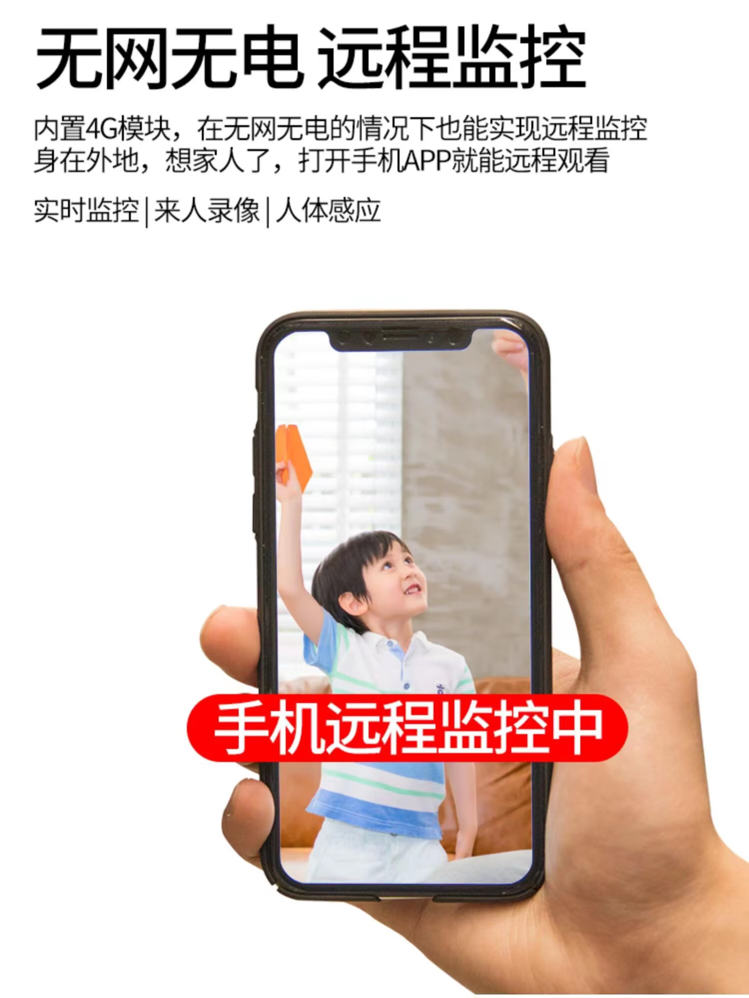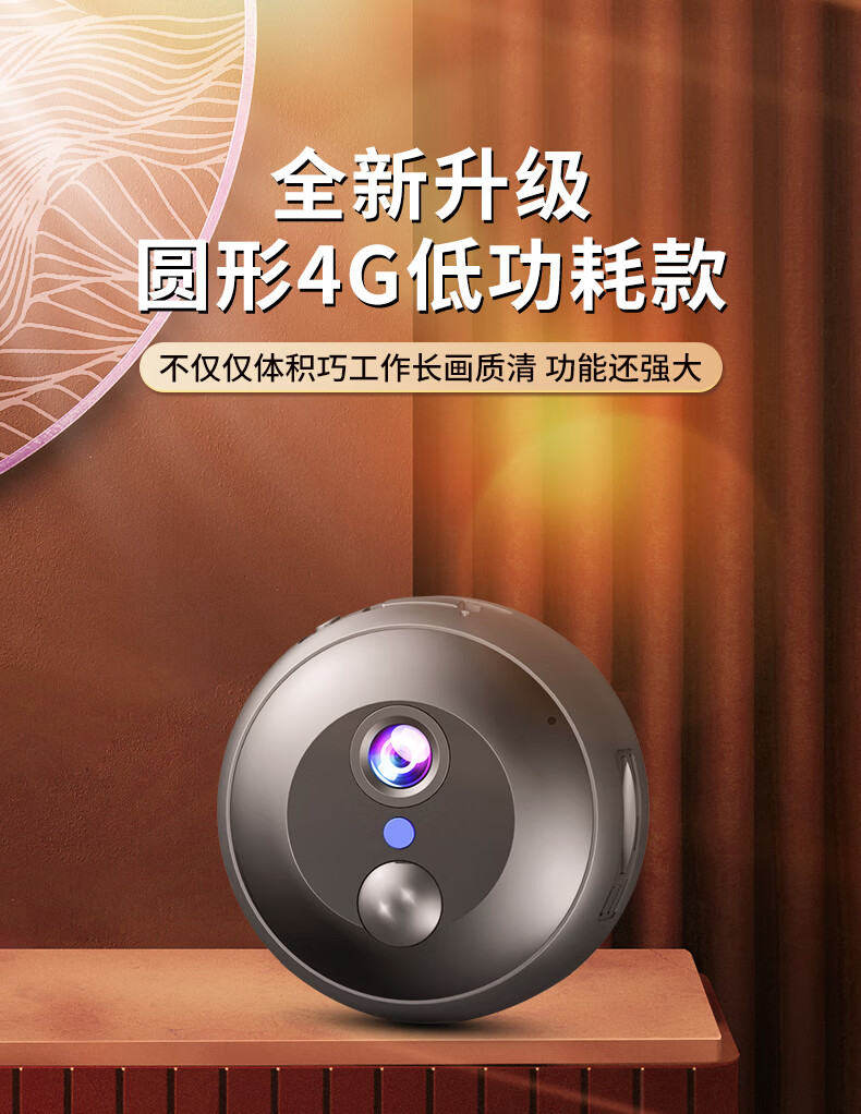 4G摄像头家用高清无线小型监控器室内外夜视超长待机便携摄像机 圆形4G版:无需连网+远程开关 128G
