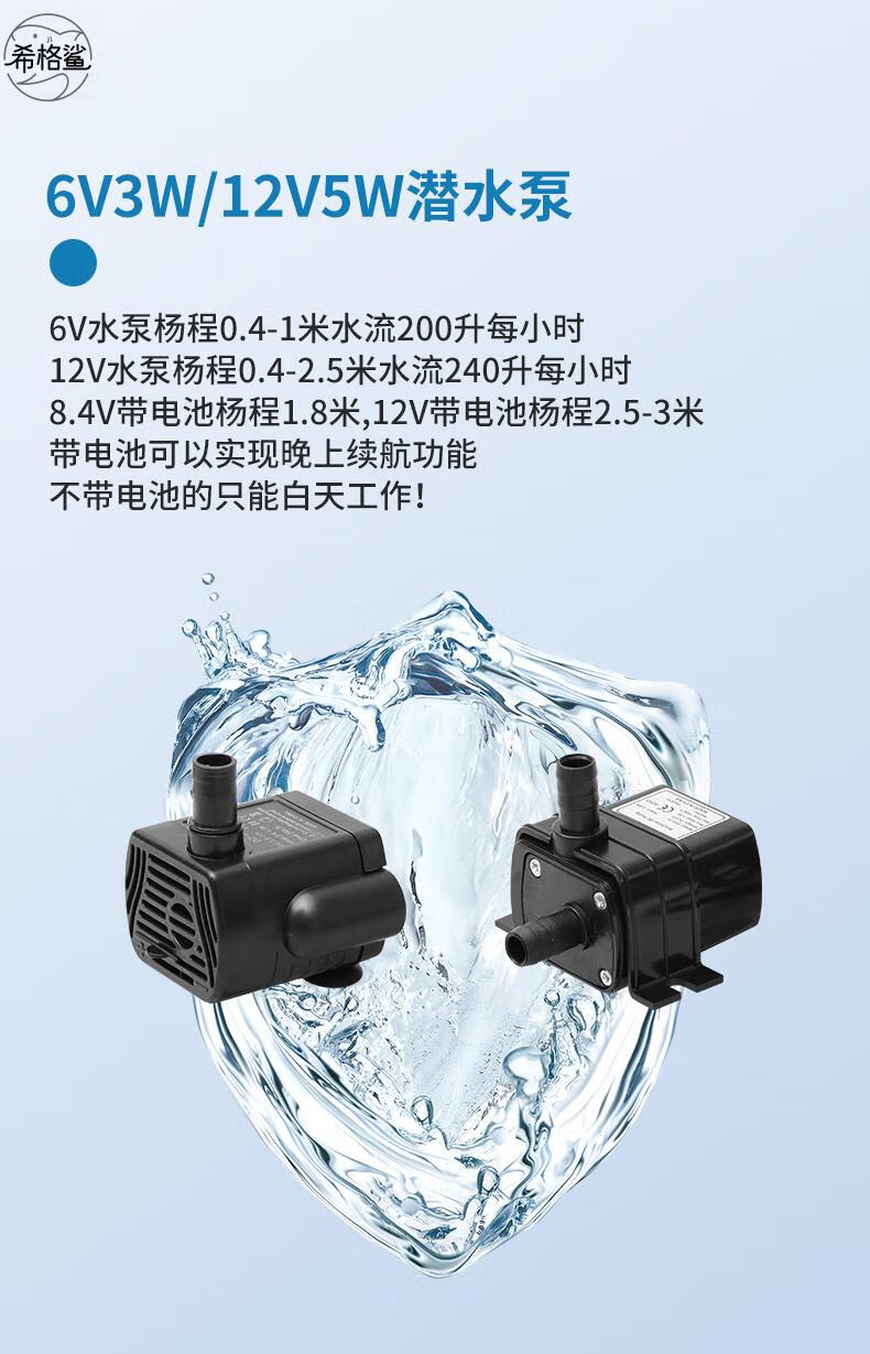 太阳能水泵12V循环鱼池过滤增氧鱼缸假山流水抽水潜水泵户外小型 S6W板+6v潜水泵+管1米