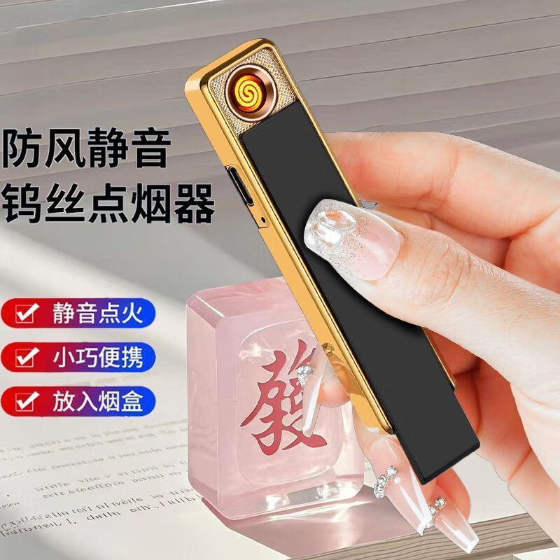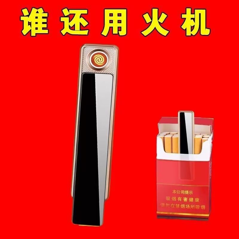 充电打火机新款神器便携创意个性潮流电子夜光点烟器防风送男友礼物 黑色-光板【实用家用】