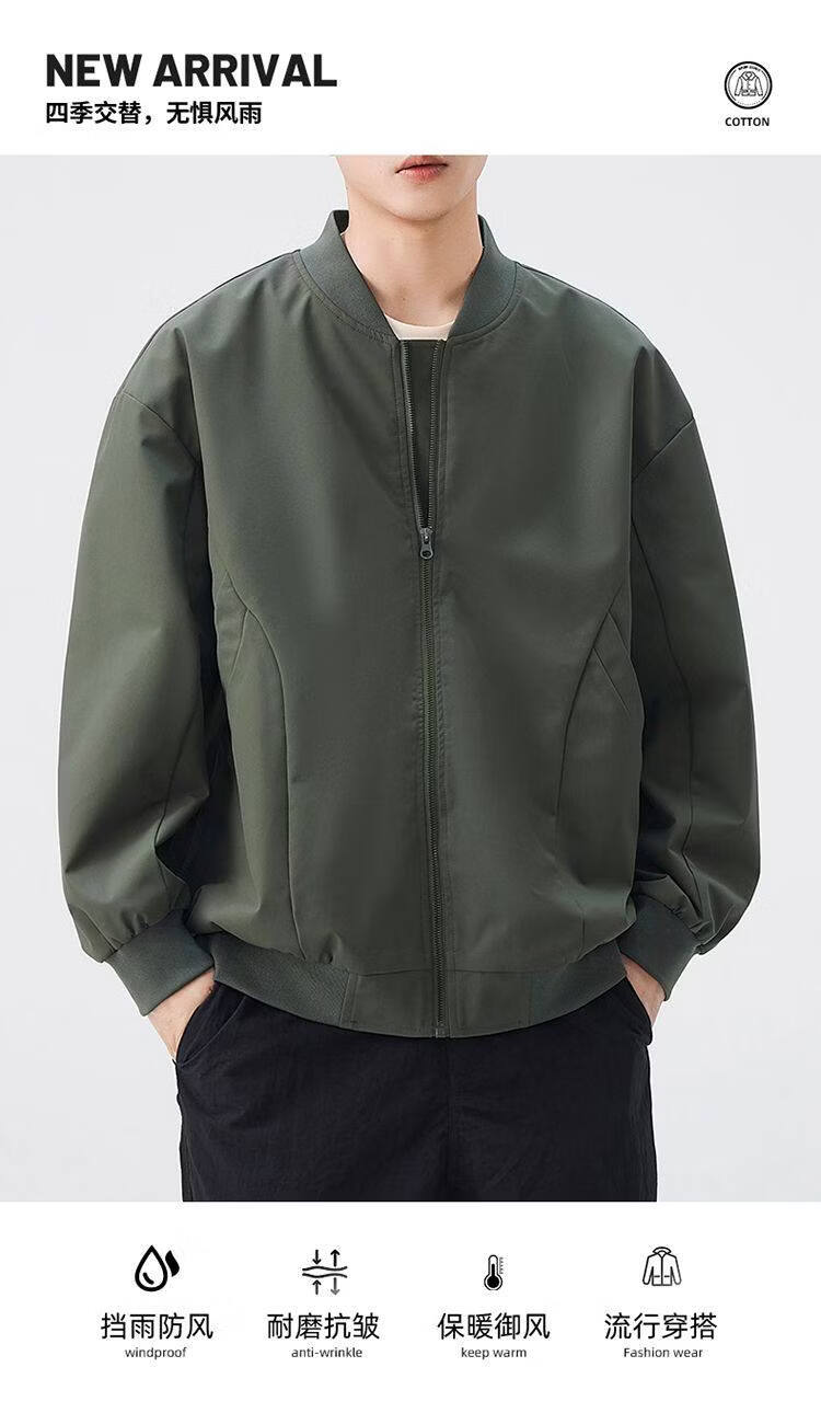 啄木鸟飞行员夹克男士2025新款秋季棒球领防风上衣宽松休闲外套男 墨绿色 【官方正品】 S 建议【80斤-100斤】