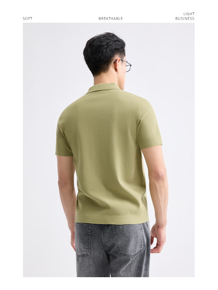 莱克斯顿短袖polo衫夏季新款透气娟丝绒针织面料商务休闲翻领短袖T恤男 浅绿色 厚款 微弹 S