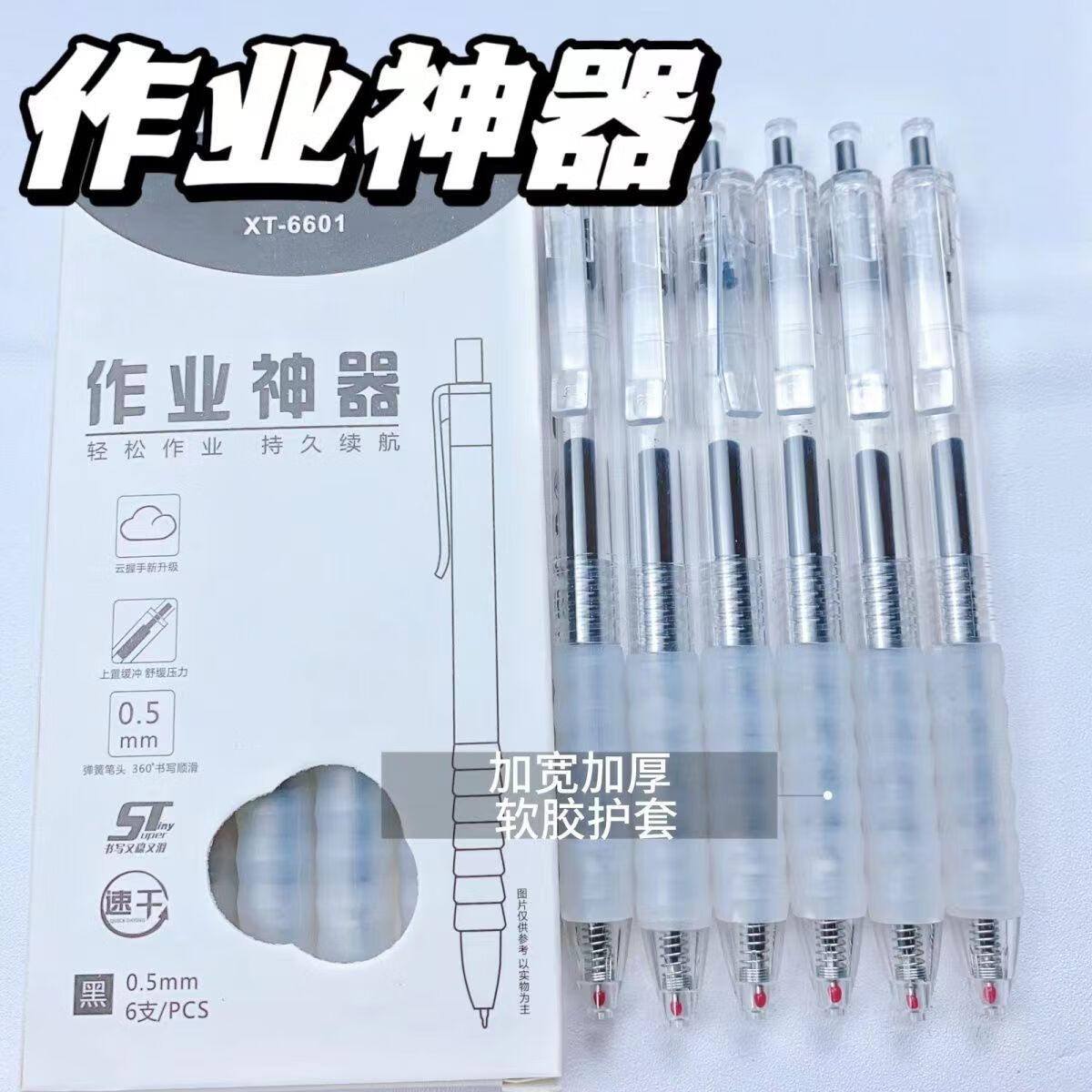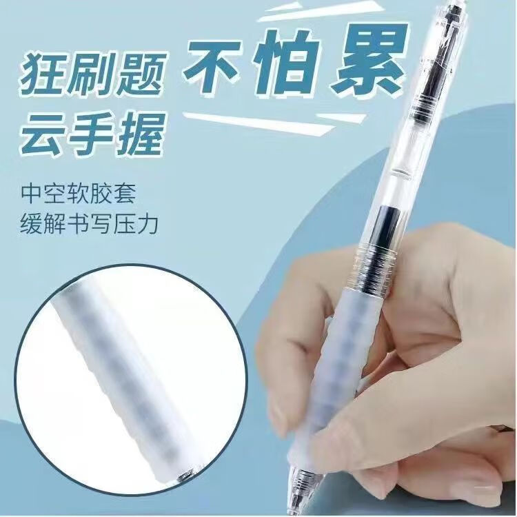 云握刷题中性笔作业神器云握按动中性笔0.5速干顺滑按压式笔考试专用黑笔 2支