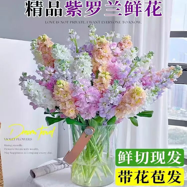 紫罗兰鲜切花真花云南基地鲜采发货香味浓花朵大枝干粗家用插花 紫罗多色混搭色10枝(更美更好看)