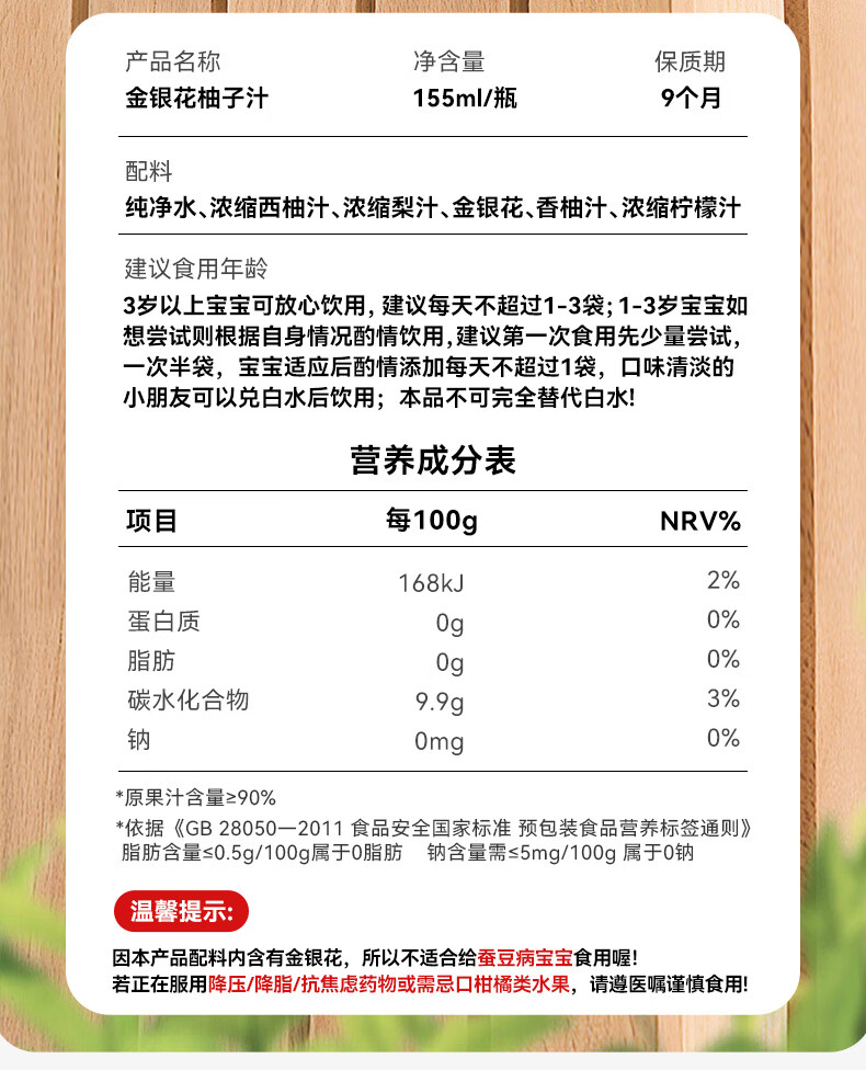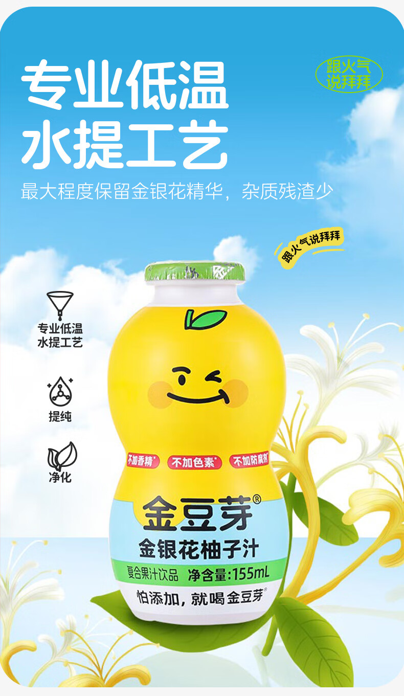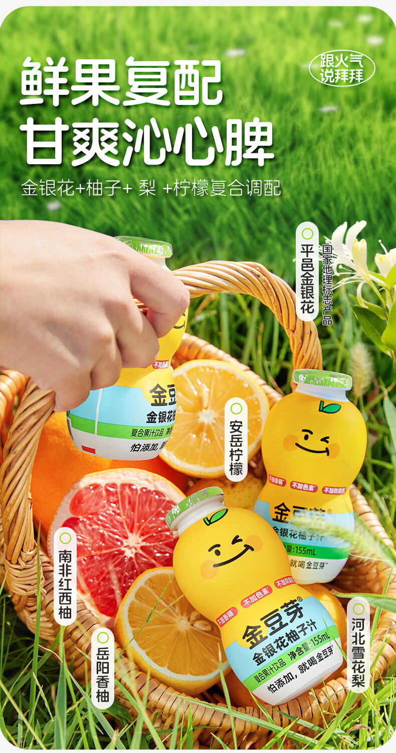 金豆芽儿童金银花柚子汁155ml*16瓶孩子饮料宝宝零食果汁西柚汁