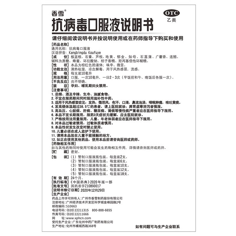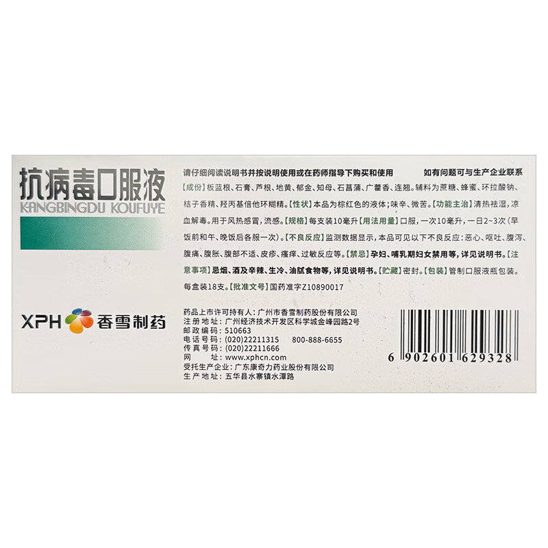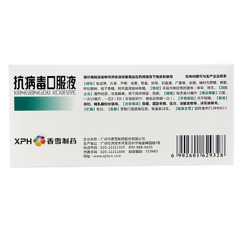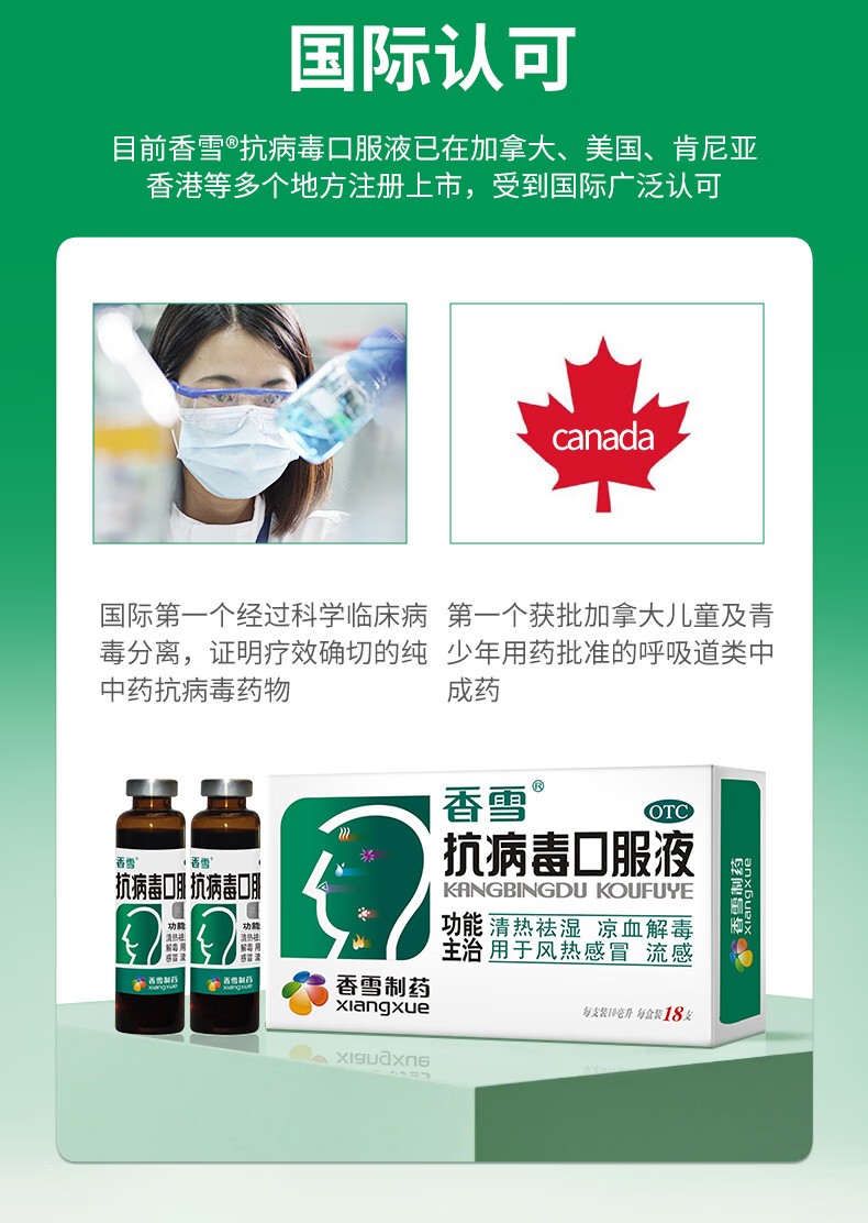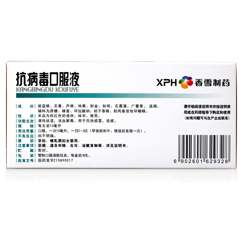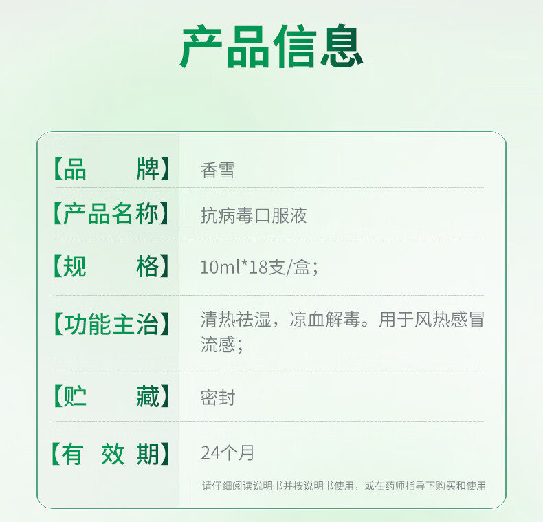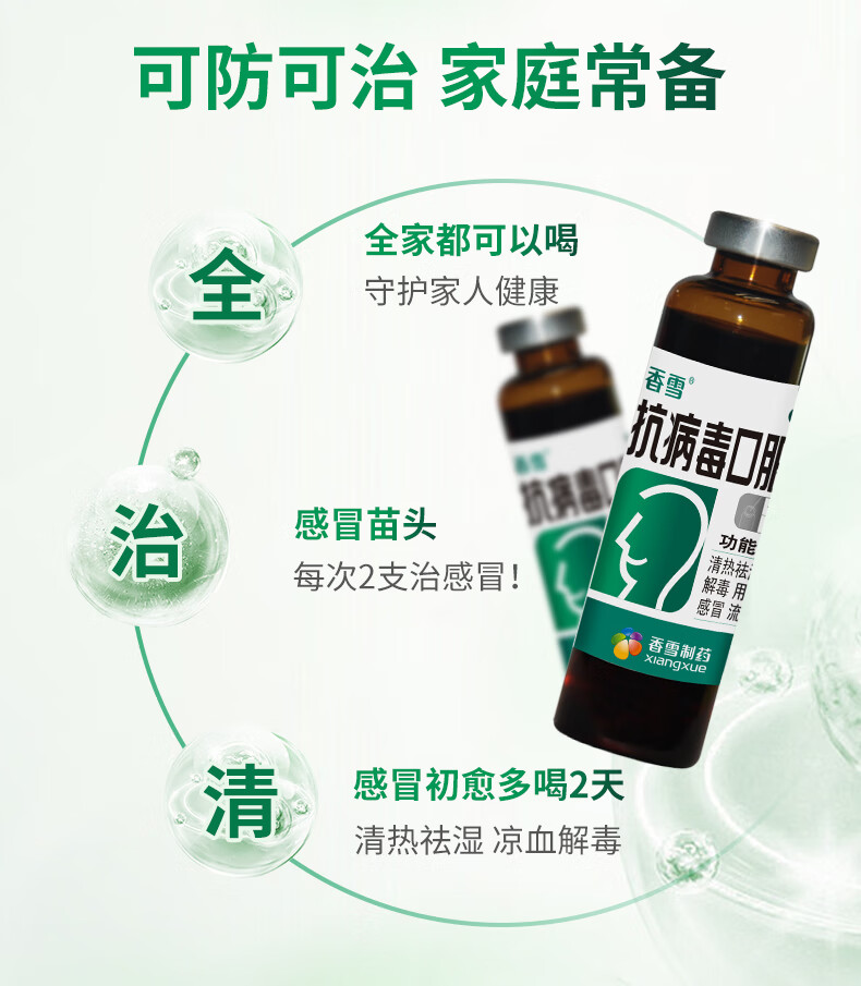 香雪 抗病毒口服液 10ml*18支 流感药 抗病毒用药 感冒咳嗽 感冒药 医保家庭常备药 清热解毒