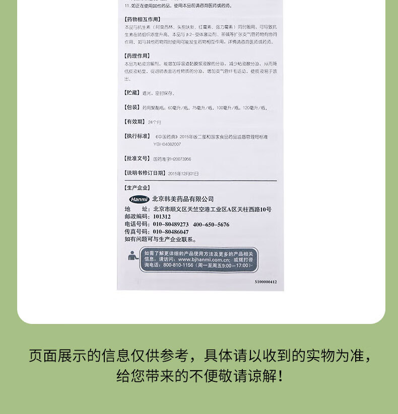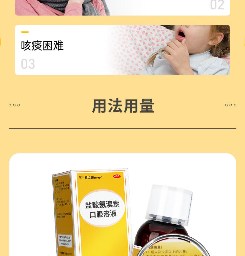 【宝妈必备】易坦静 盐酸氨溴索口服溶液3mg/ml*120ml 流感 感冒咳嗽药 急慢性支气管炎痰液粘稠 小儿咳嗽