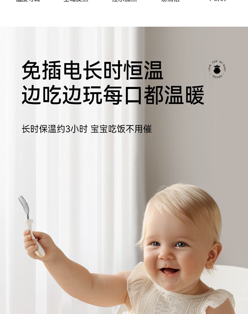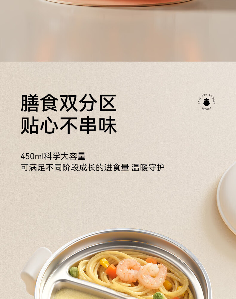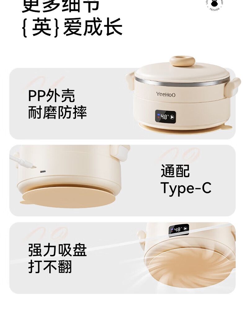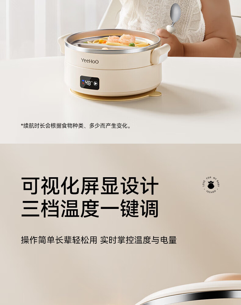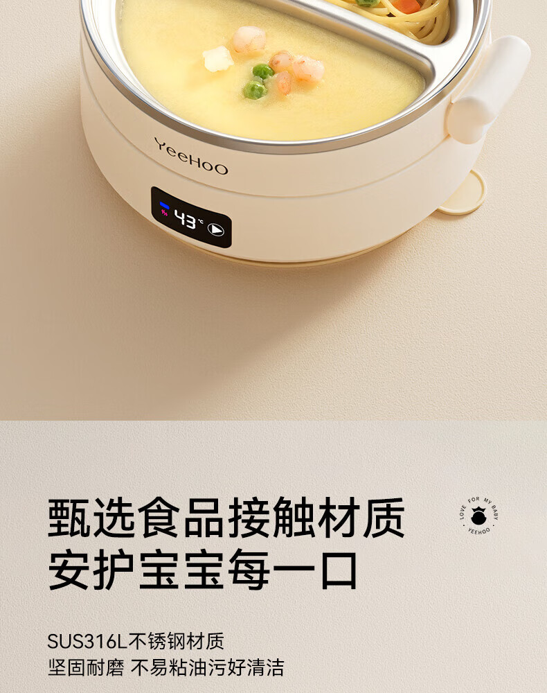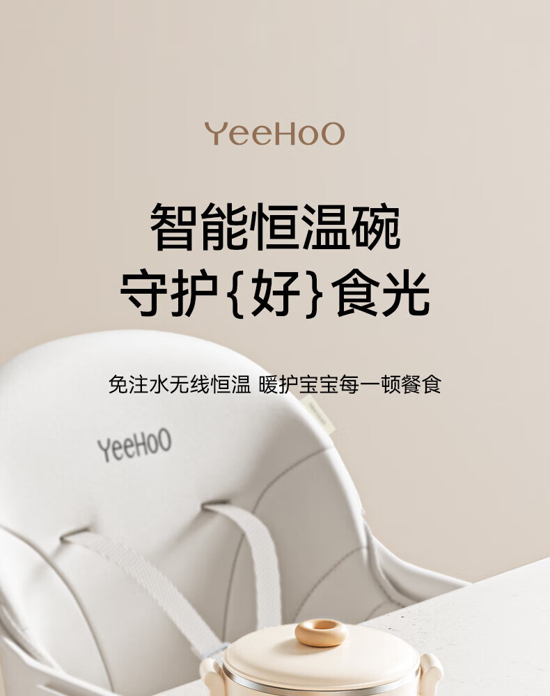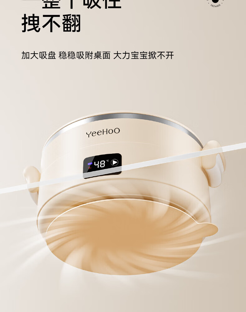 英氏(YEEHOO)婴儿智能恒温辅食碗宝宝餐盘分格盘不锈钢免注水儿童充电保温碗