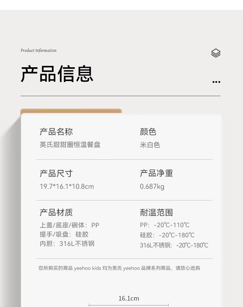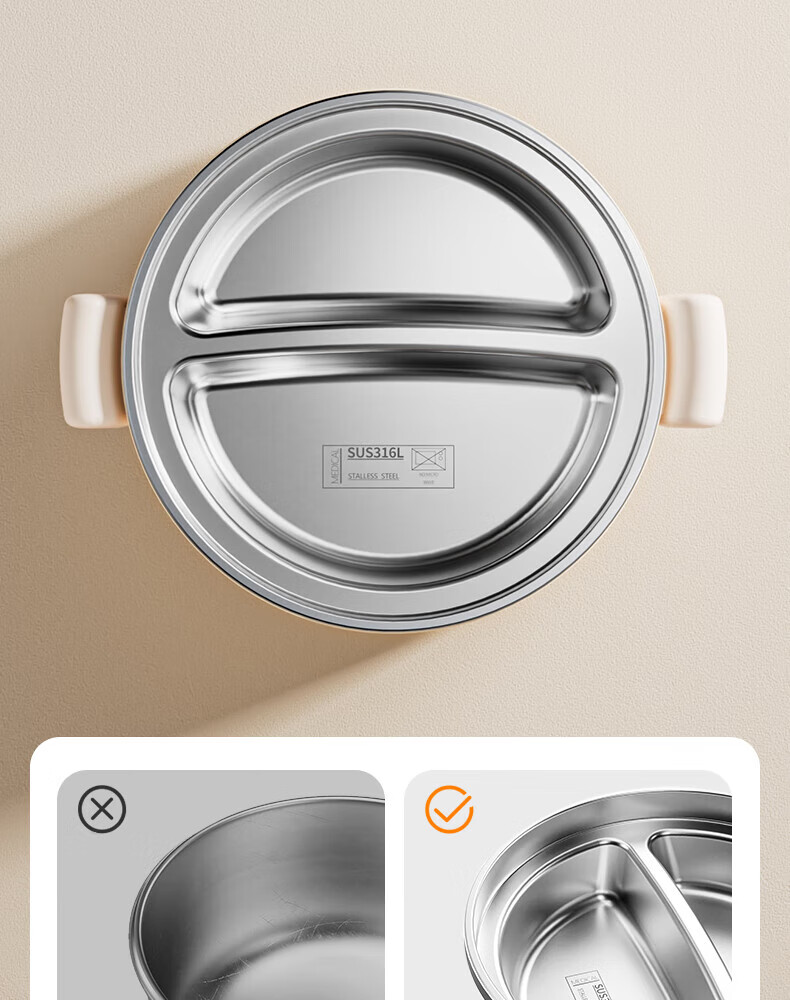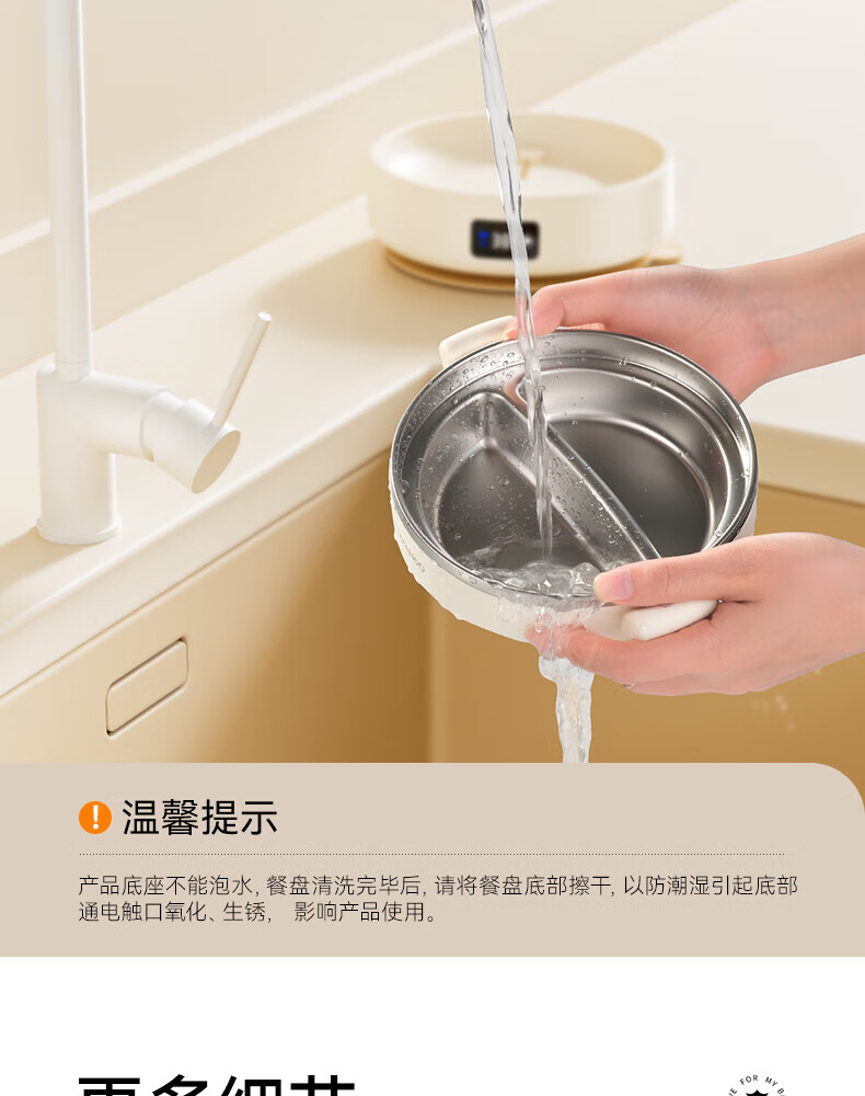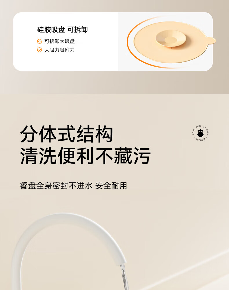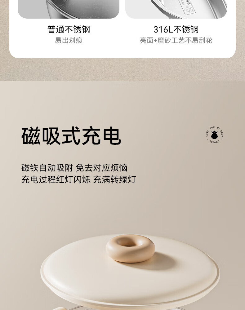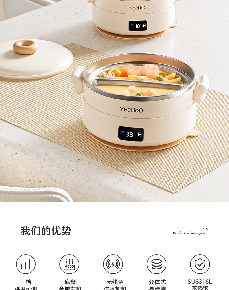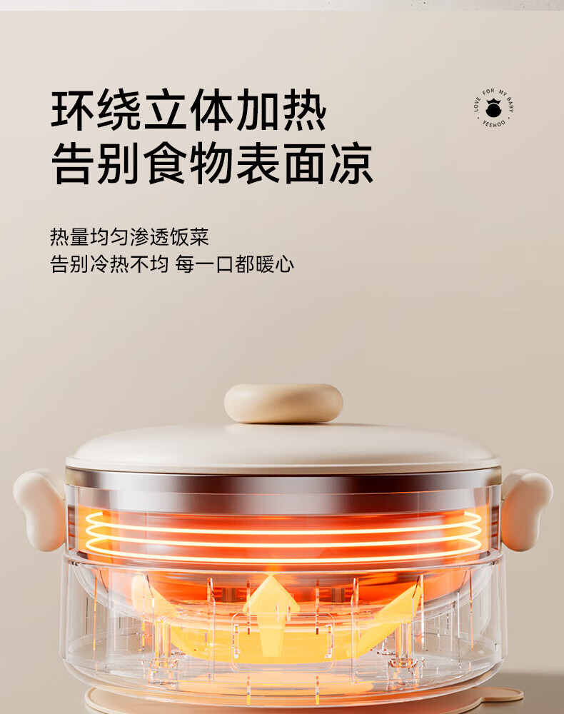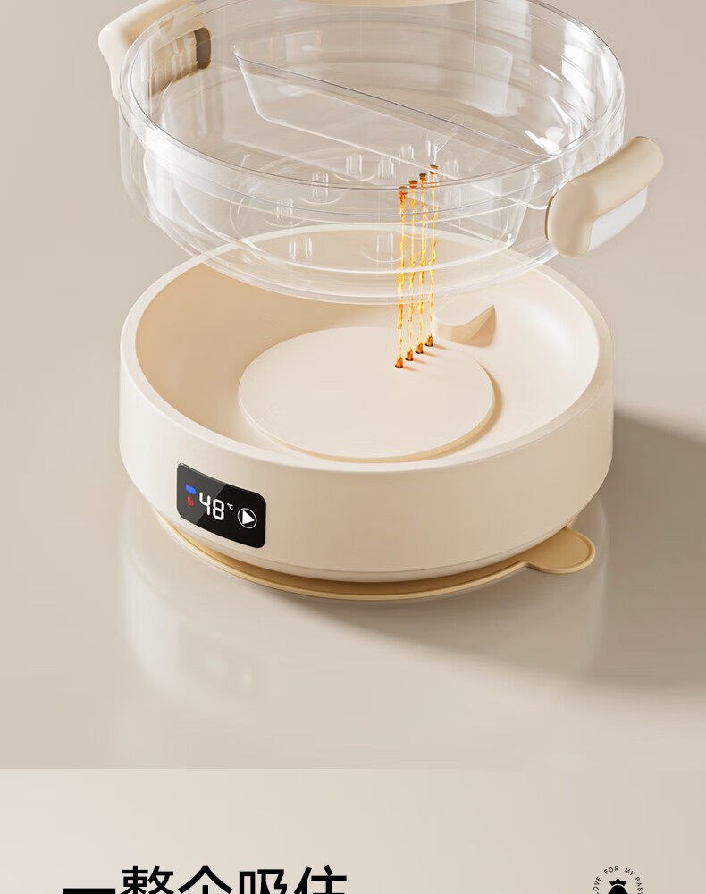 英氏(YEEHOO)婴儿智能恒温辅食碗宝宝餐盘分格盘不锈钢免注水儿童充电保温碗