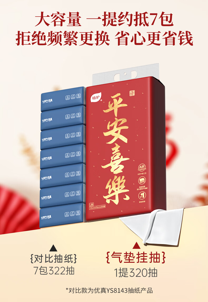 植护大包悬挂式抽 壁挂式餐巾纸 家用厕纸擦手用纸 卫生纸巾 M码-蓝色 4层250抽*8提