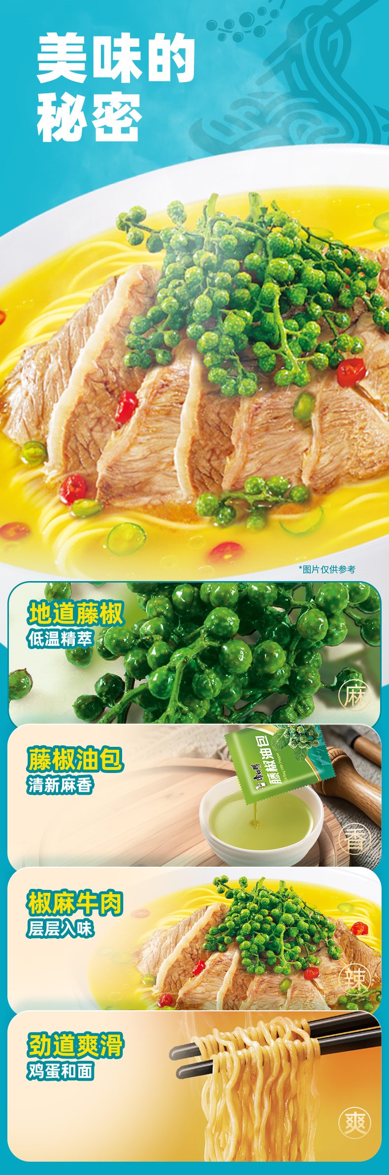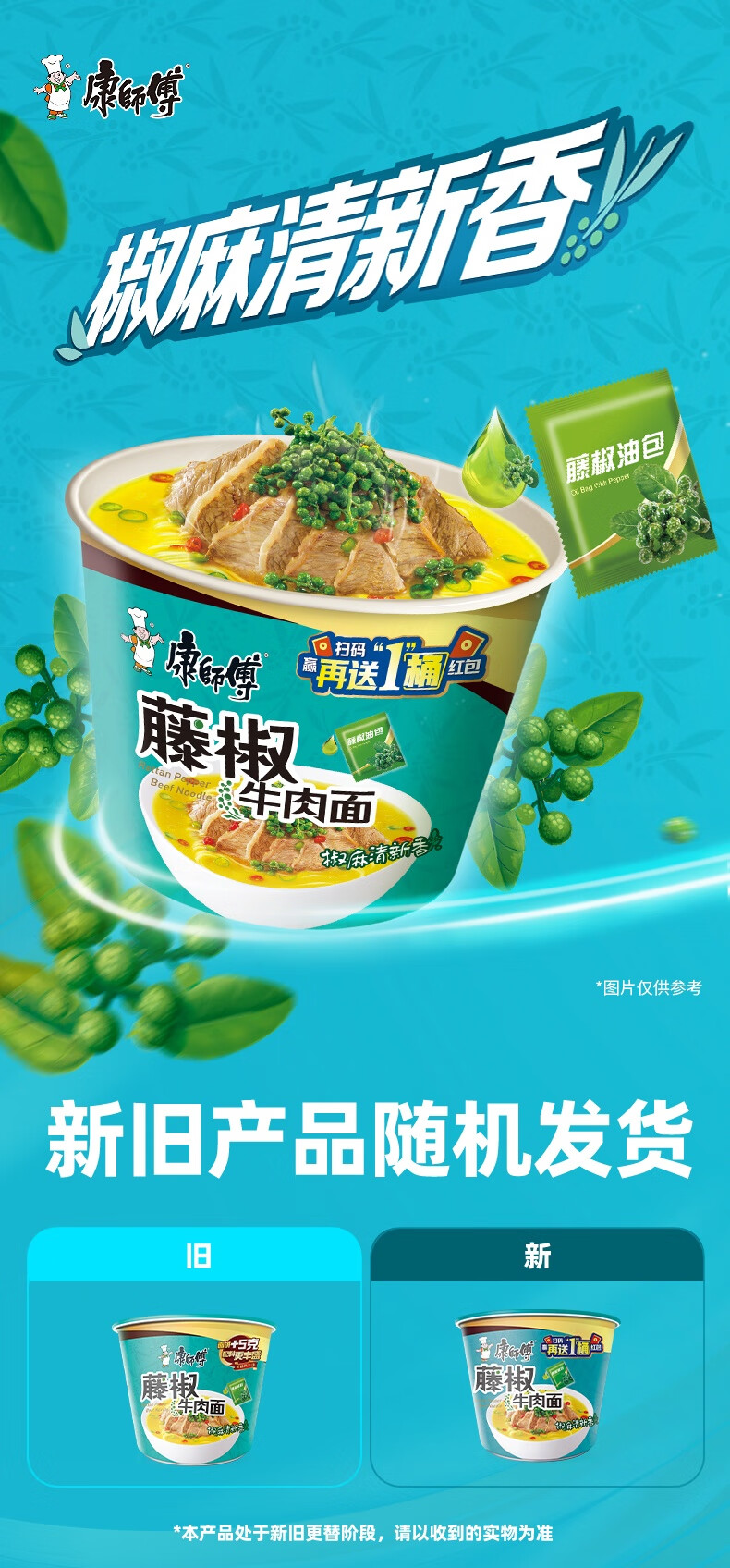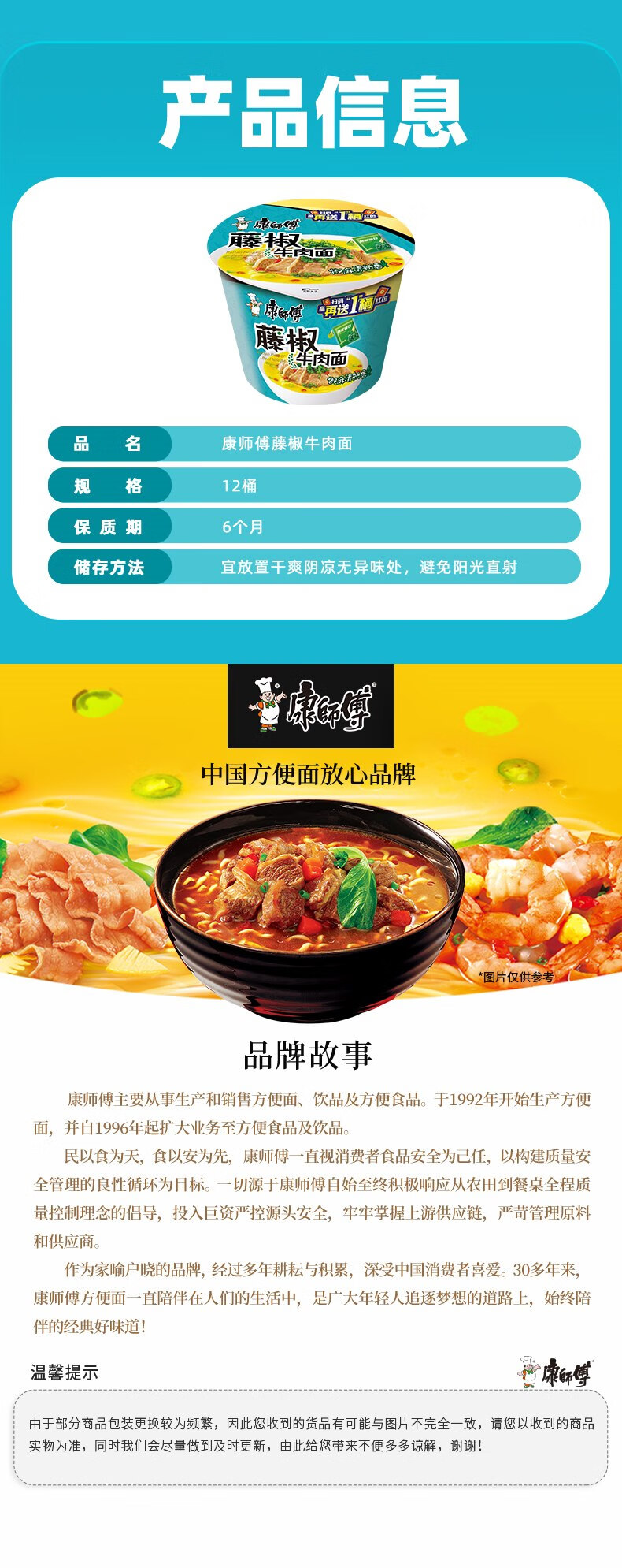 康师傅 方便面 经典藤椒牛肉桶面110g*12 泡面整箱速食 方便食品