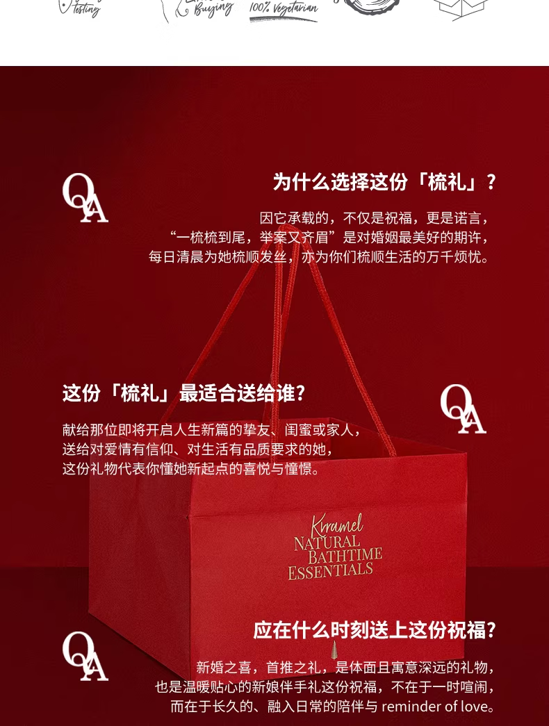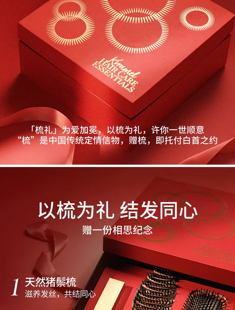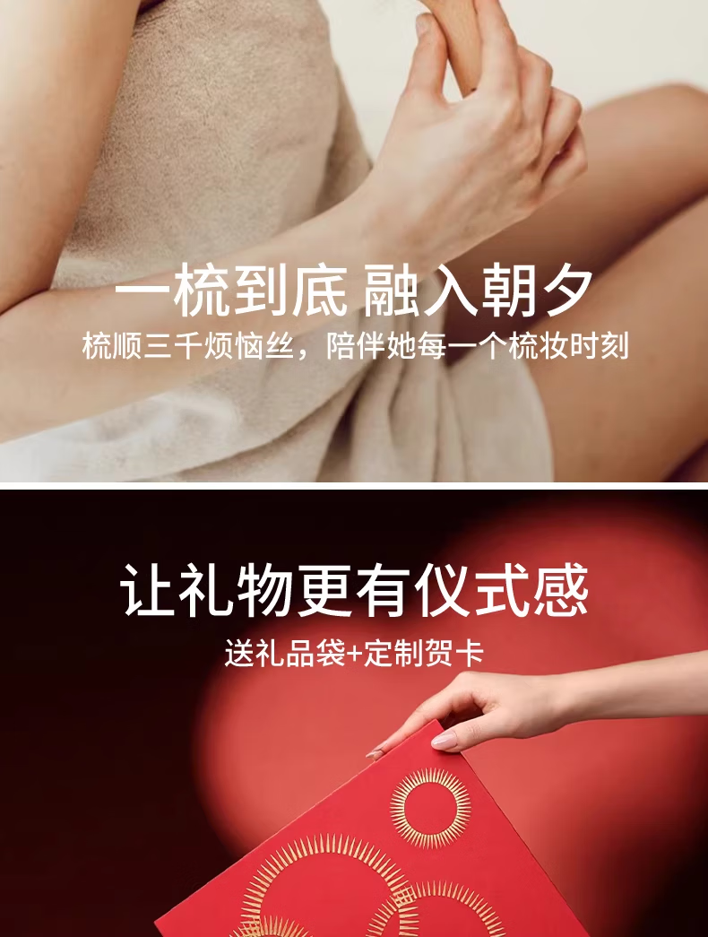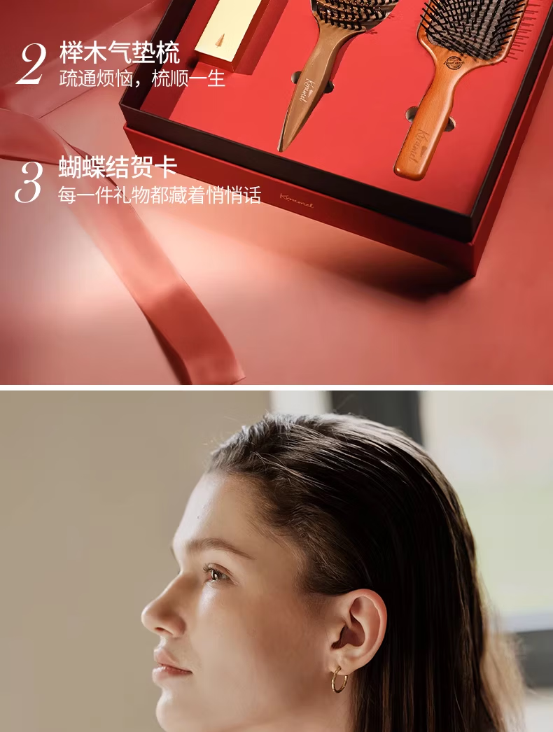 KRRAMEL生日礼物女士梳子礼物女生送闺蜜结婚订婚礼物伴手礼新婚礼物 【天生一对】锦绣双囍礼盒(中号松塔梳)