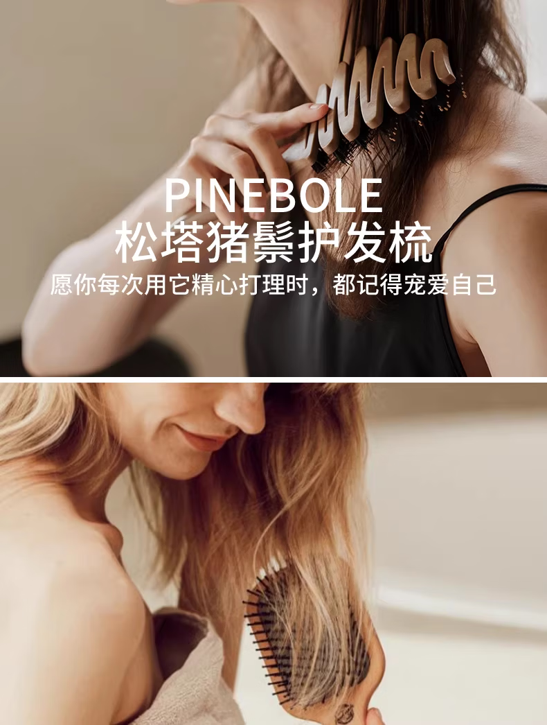 KRRAMEL生日礼物女士梳子防静电进口醋酸扁平发夹盘发实用送妈妈送闺蜜 中号[松塔梳]-原木色+椭圆[醋酸发夹】-云岫灰