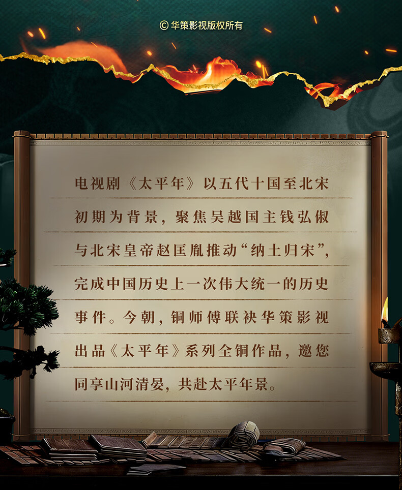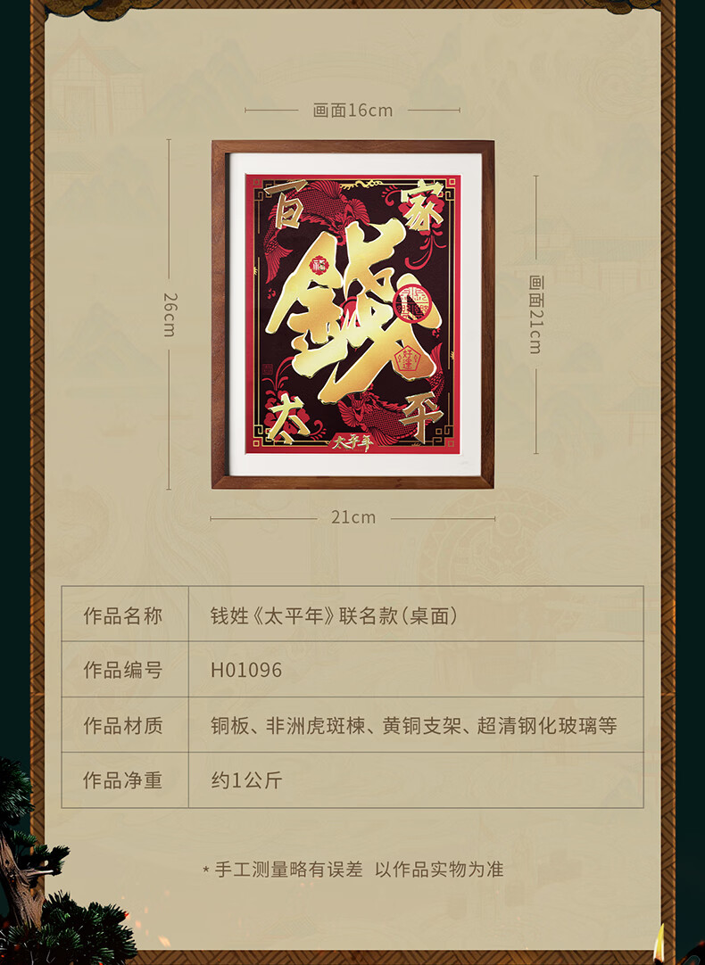 铜师傅手工錾刻 铜雕画 钱姓《太平年》联名款(桌面)装饰画