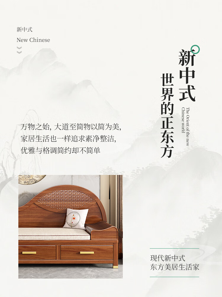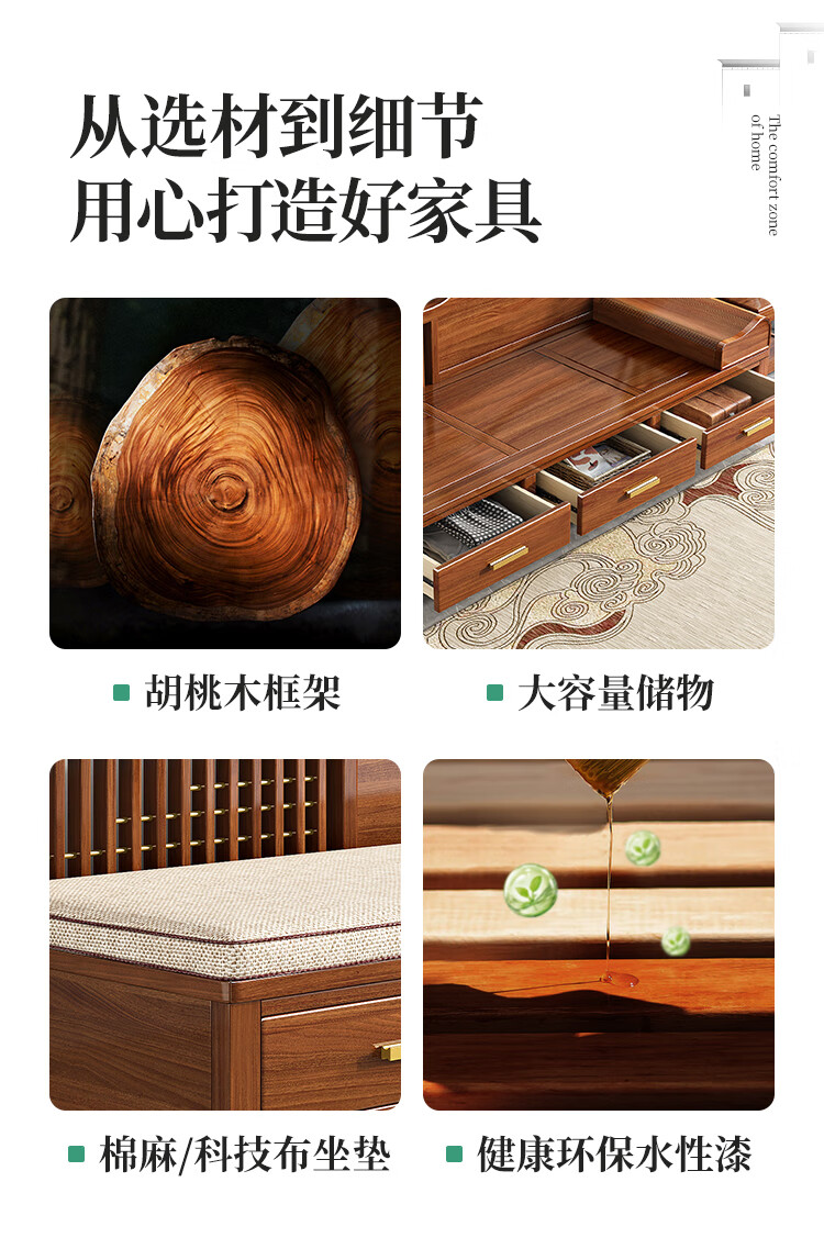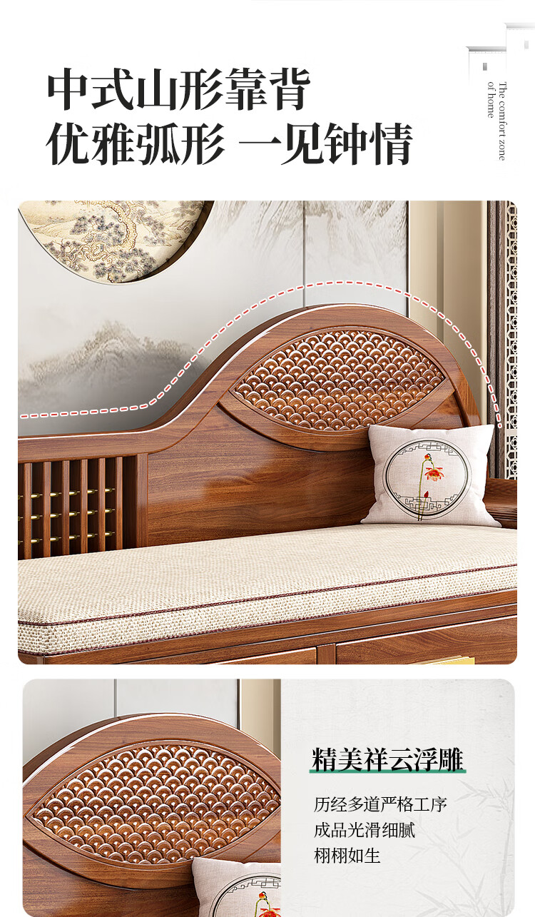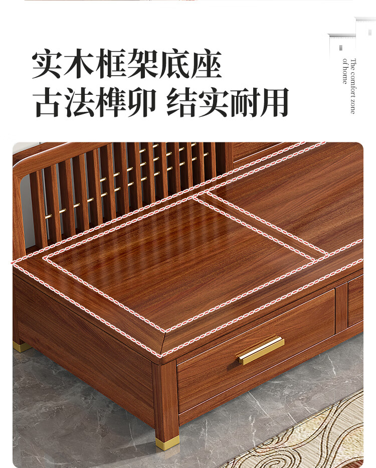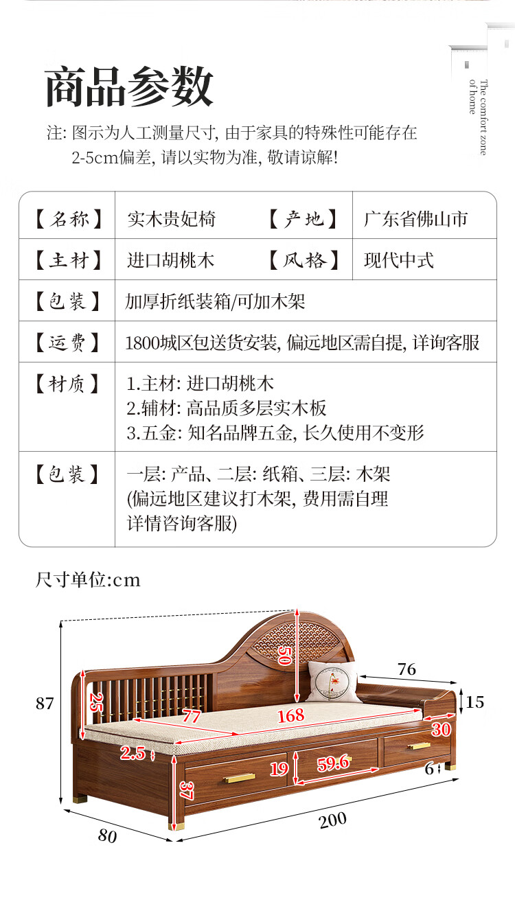 澜轩中式胡桃木实木沙发床多功能贵妃椅带抽屉美人榻两用客厅卧式躺椅 【胡桃木】贵妃躺椅(不带坐垫)