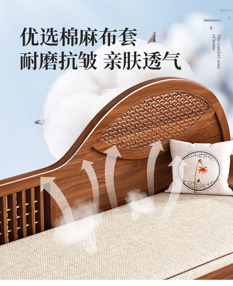 林氏家居全实木沙发新中式罗汉床塌小户型客厅冬夏沙发床一体两用LH586K4 【橡木|1.8m|常规款】罗汉榻