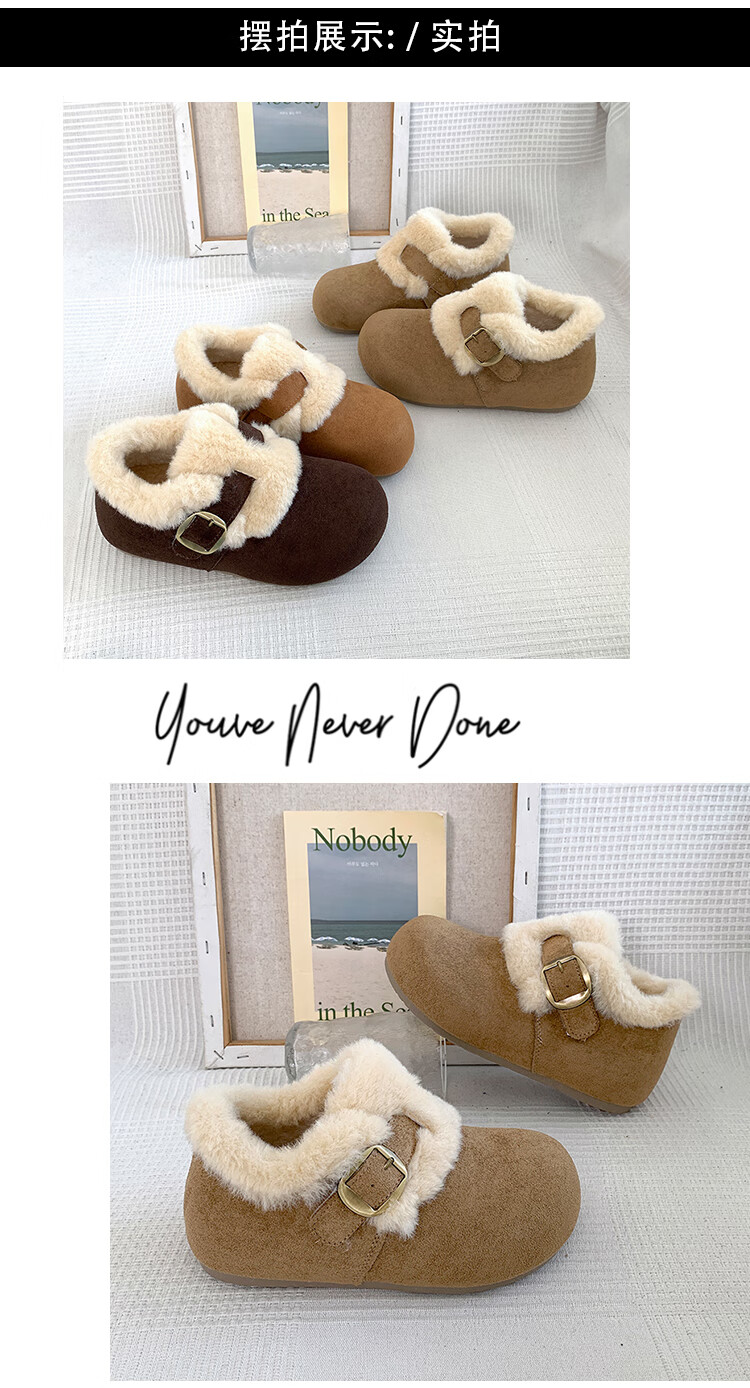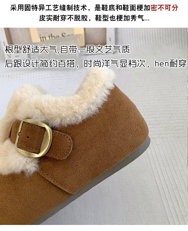 稻草人(MEXICAN)加绒勃肯鞋女2026年冬季新款皮毛一体防滑雪地靴复古厚底保暖棉鞋 棕色 35