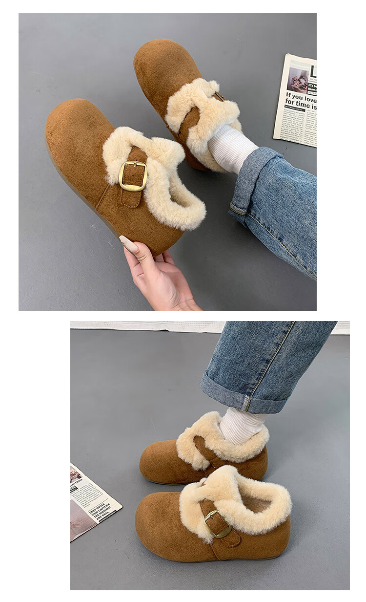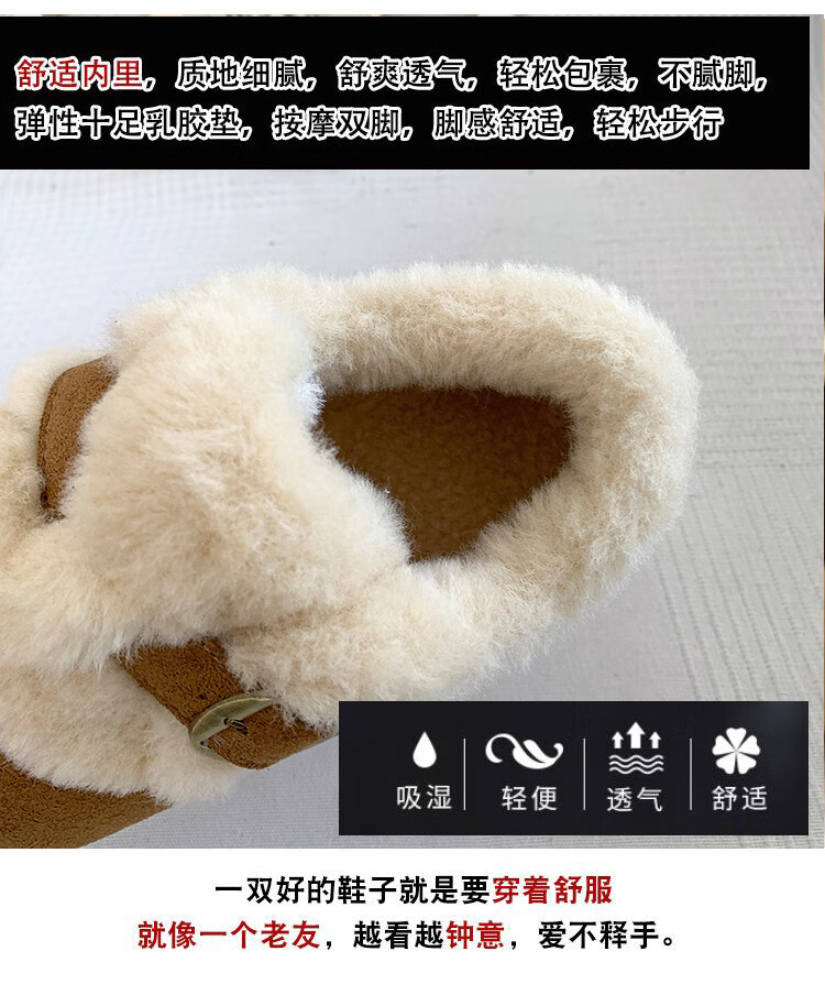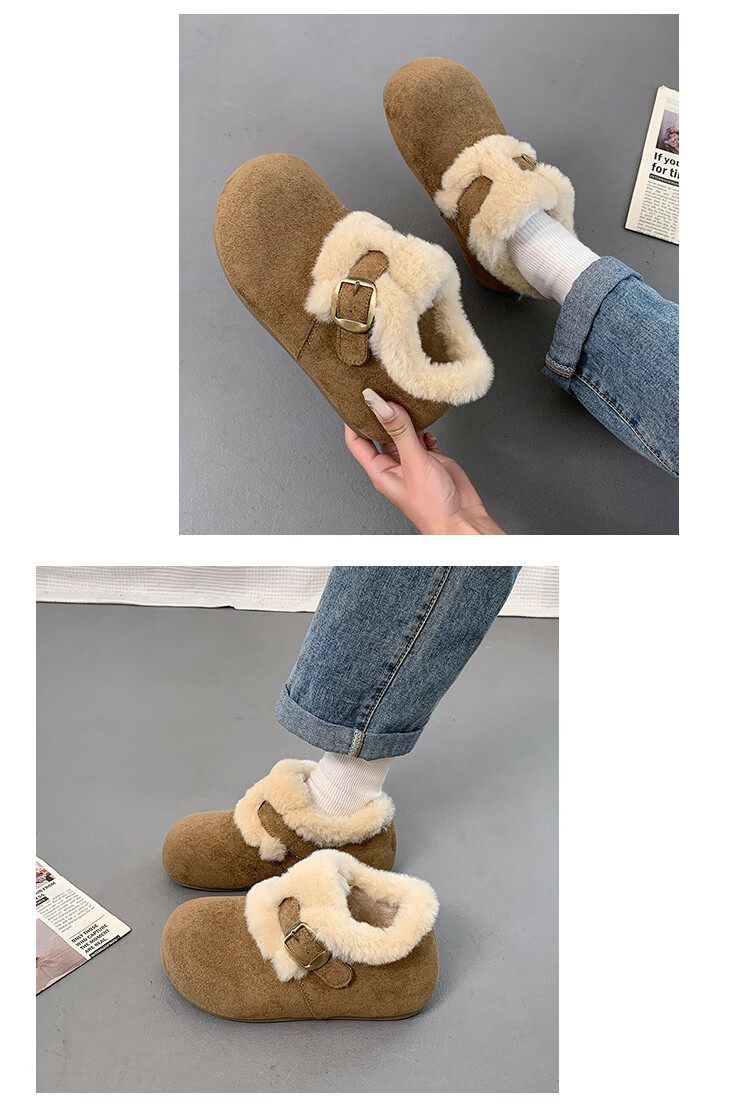 星期六加绒勃肯鞋女2025新款秋冬季软底毛毛鞋一脚蹬懒人保暖棉鞋豆豆鞋 黑色 【通勤百搭】跟高1.5cm 36