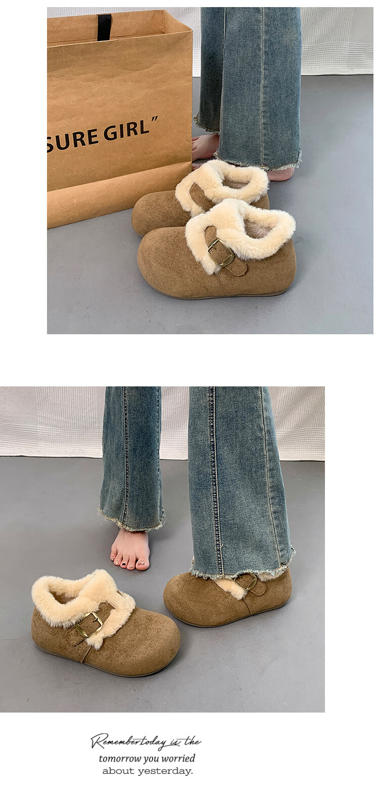 星期六加绒勃肯鞋女2025新款秋冬季软底毛毛鞋一脚蹬懒人保暖棉鞋豆豆鞋 黑色 【通勤百搭】跟高1.5cm 35